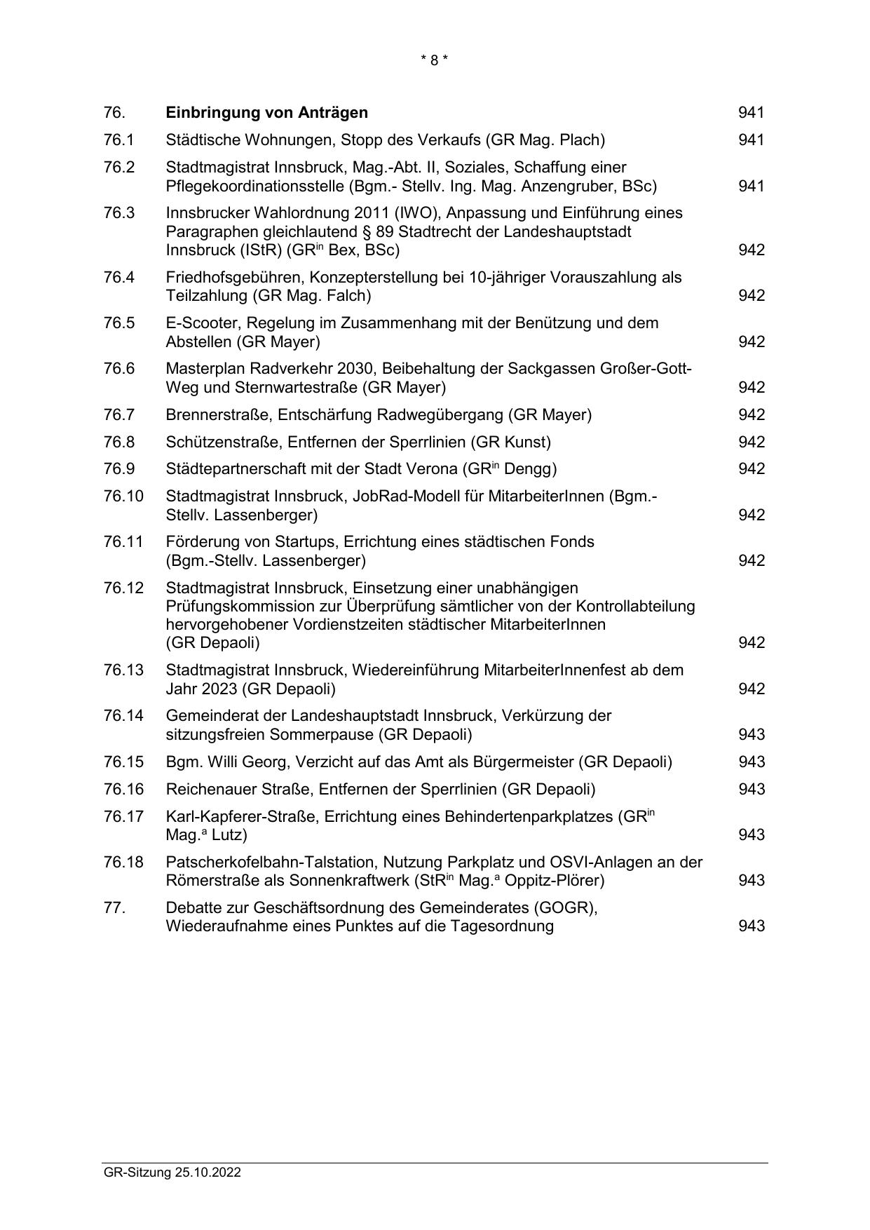 Gemeinderat der Landeshauptstadt Innsbruck, Verkürzung der
