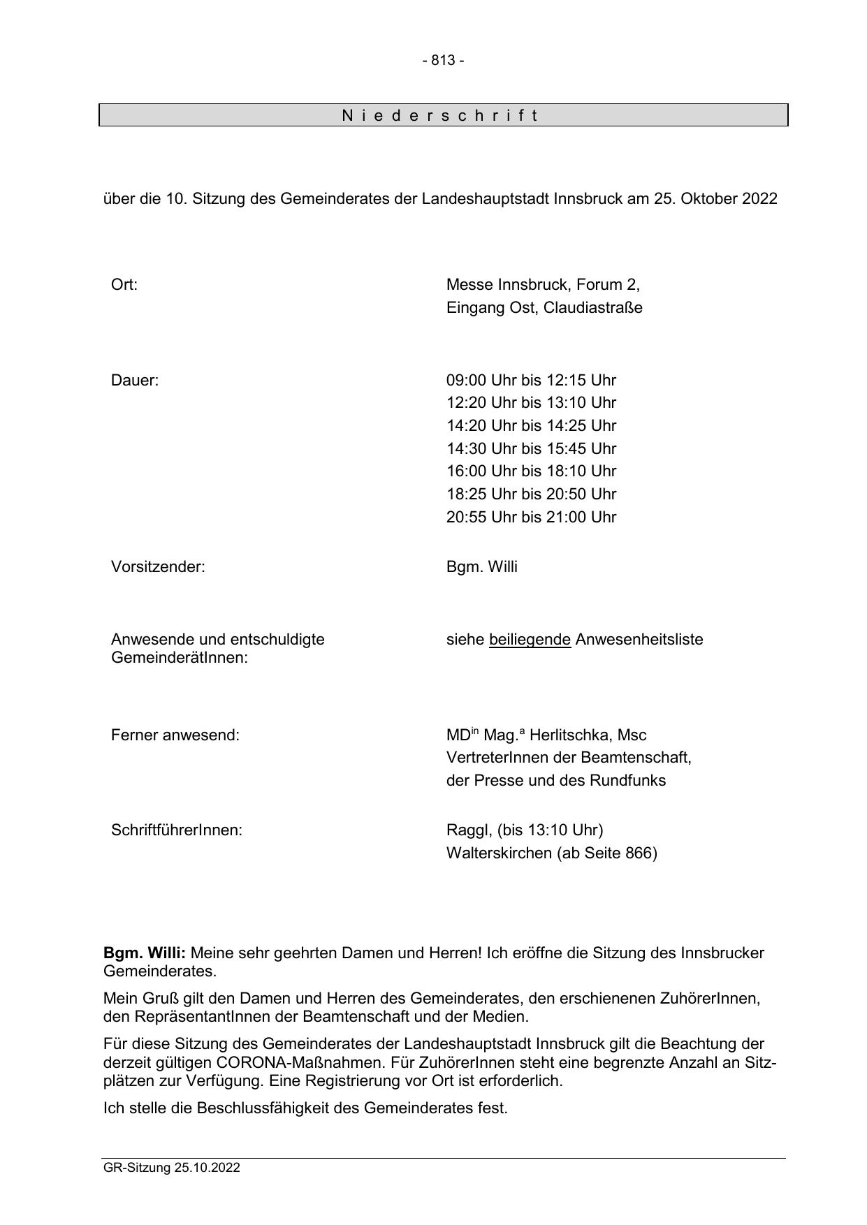 Bgm. Willi: Meine sehr geehrten Damen und Herren! Ich eröffne die Sitzung des Innsbrucker