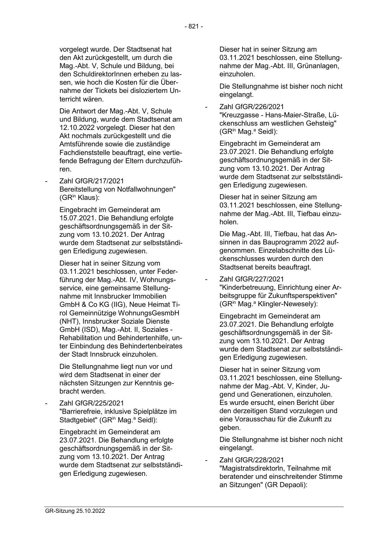 geschäftsordnungsgemäß in der Sitzung vom 13.10.2021. Der Antrag