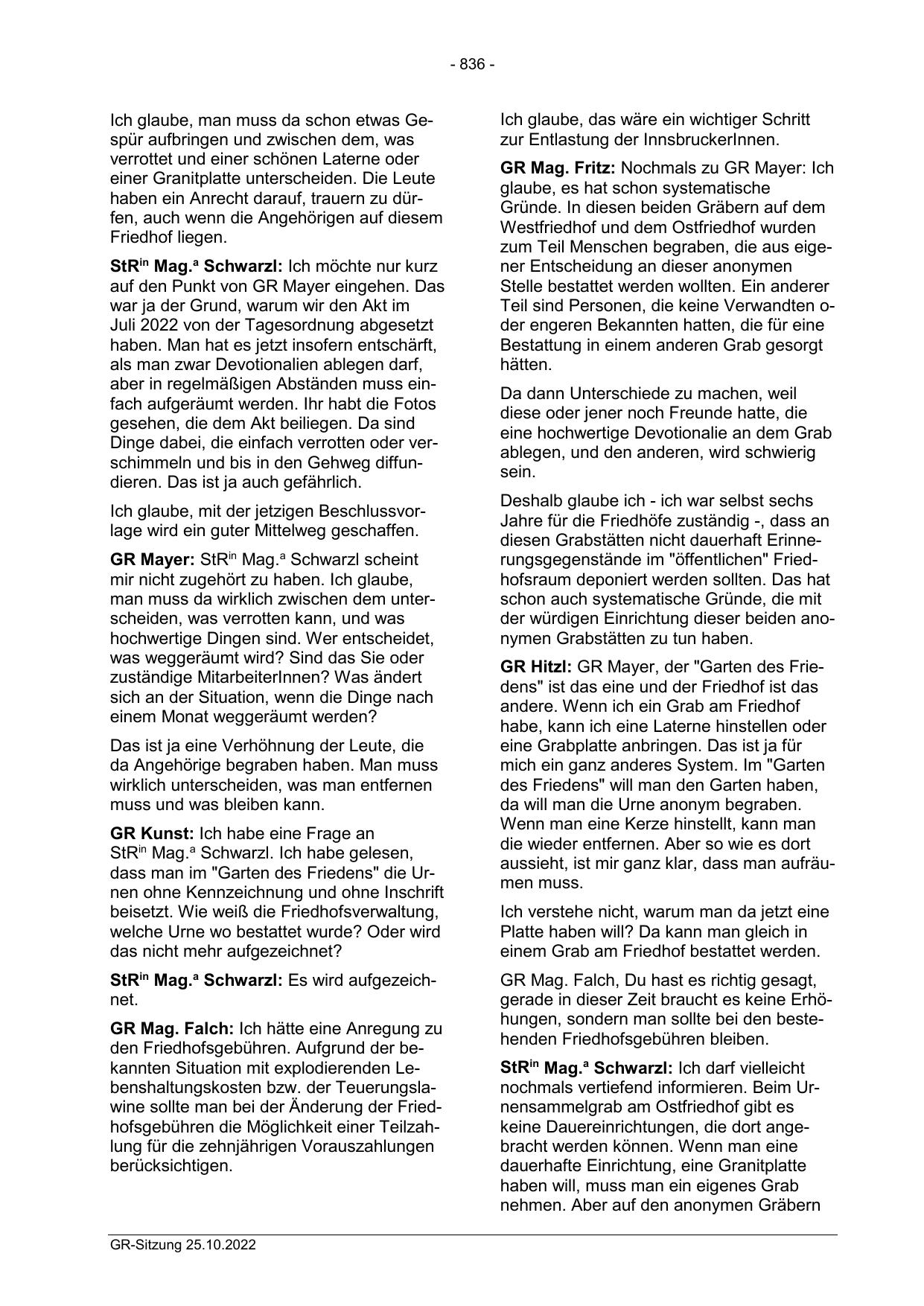 GR Hitzl: GR Mayer, der "Garten des Friedens" ist das eine und der Friedhof ist das