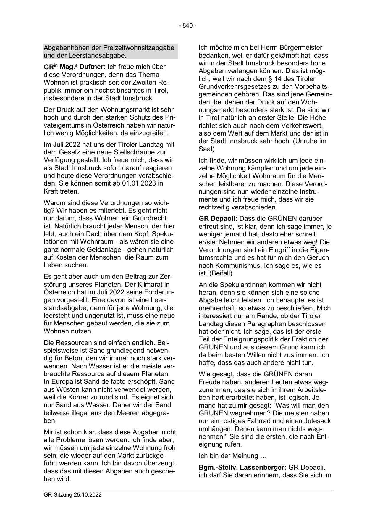 Bgm.-Stellv. Lassenberger: GR Depaoli,