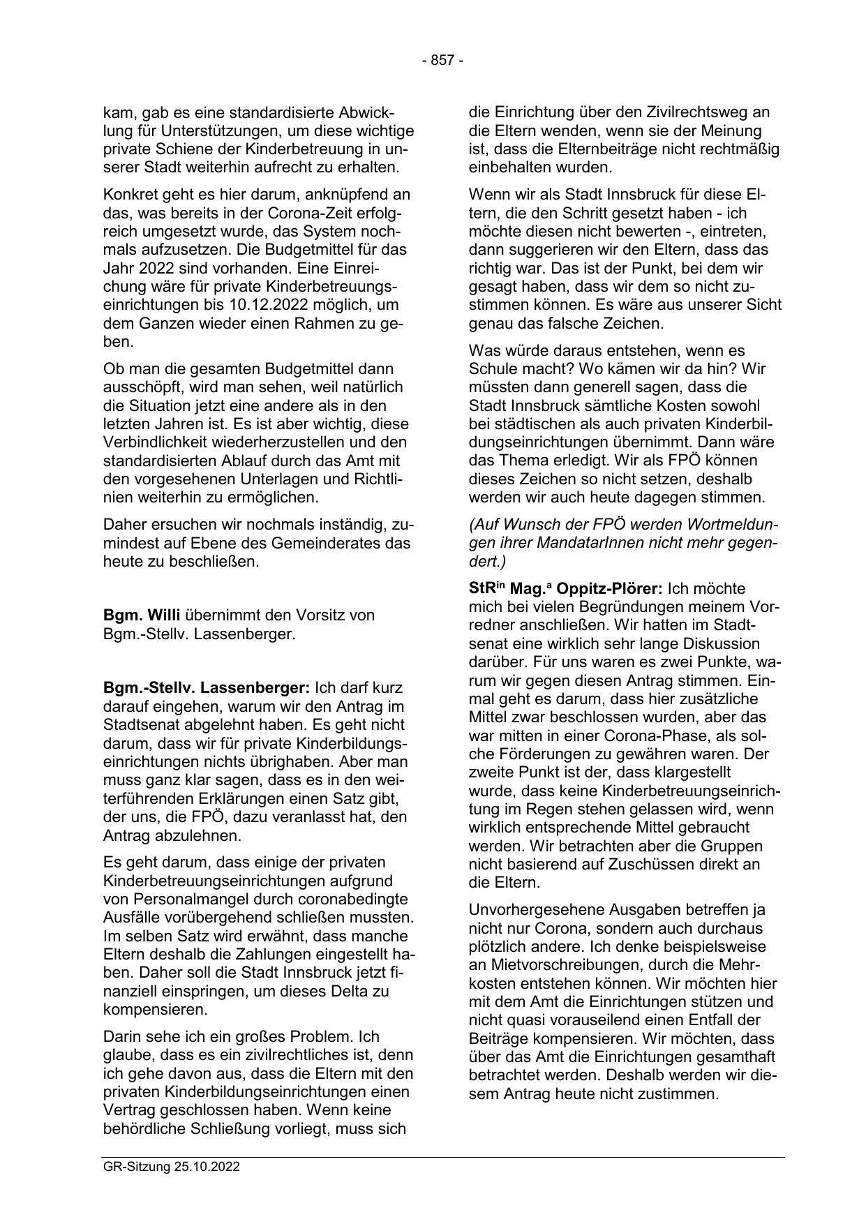 Wenn wir als Stadt Innsbruck für diese Eltern, die den Schritt gesetzt haben - ich