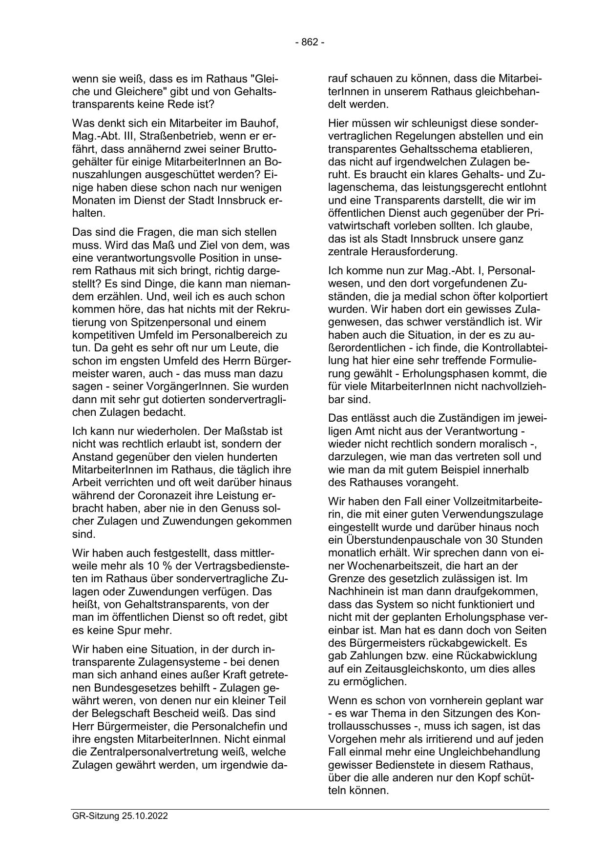 rauf schauen zu können, dass die MitarbeiterInnen in unserem Rathaus gleichbehandelt werden.