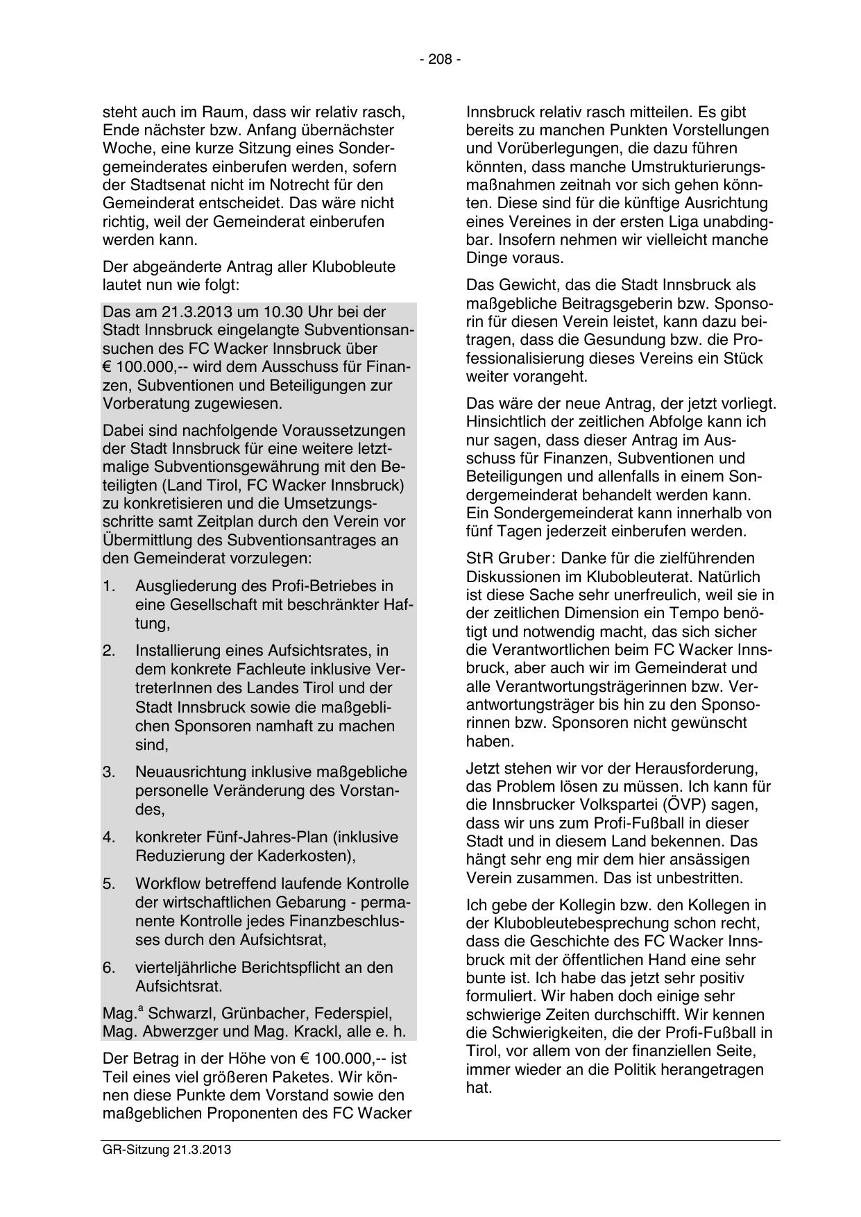 die Verantwortlichen beim FC Wacker Innsbruck, aber auch wir im Gemeinderat und