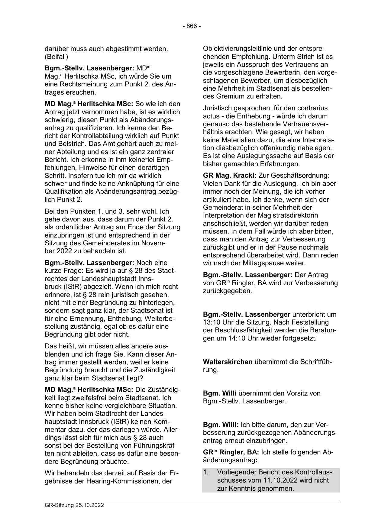 kurze Frage: Es wird ja auf § 28 des Stadtrechtes der Landeshauptstadt Innsbruck (IStR) abgezielt. Wenn ich mich recht
