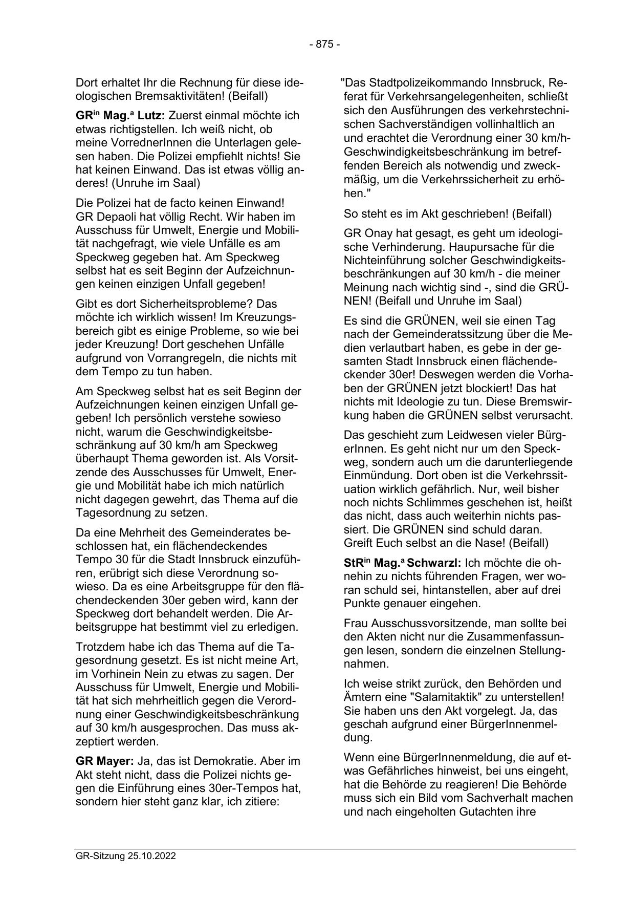nach der Gemeinderatssitzung über die Medien verlautbart haben, es gebe in der gesamten Stadt Innsbruck einen flächendeckender 30er! Deswegen werden die Vorhaben der GRÜNEN jetzt blockiert! Das hat