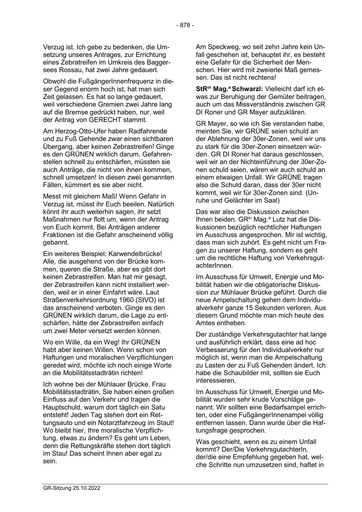 weil wir an der Nichteinführung der 30er-Zonen schuld seien, wären wir auch schuld an