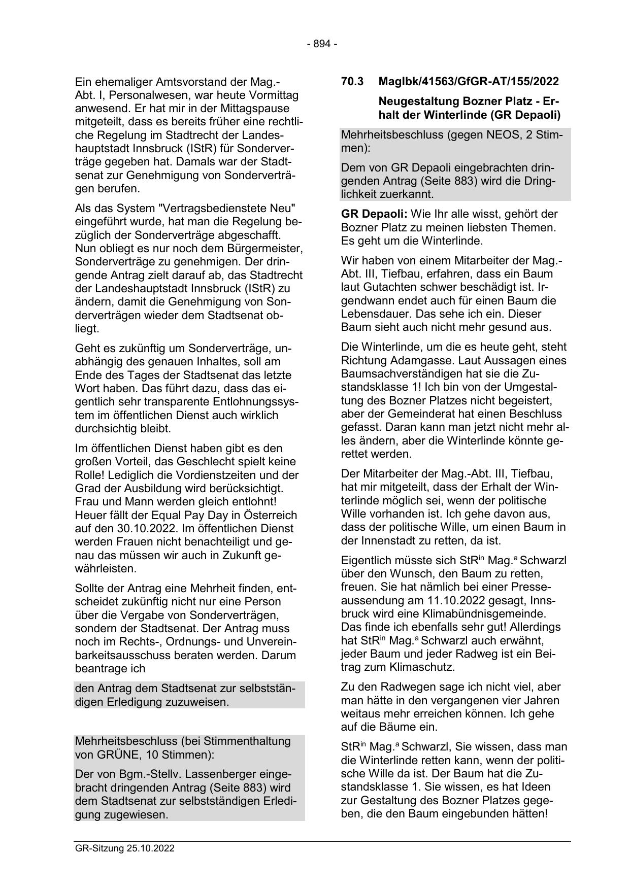 Dem von GR Depaoli eingebrachten dringenden Antrag (Seite 883) wird die Dringlichkeit zuerkannt.