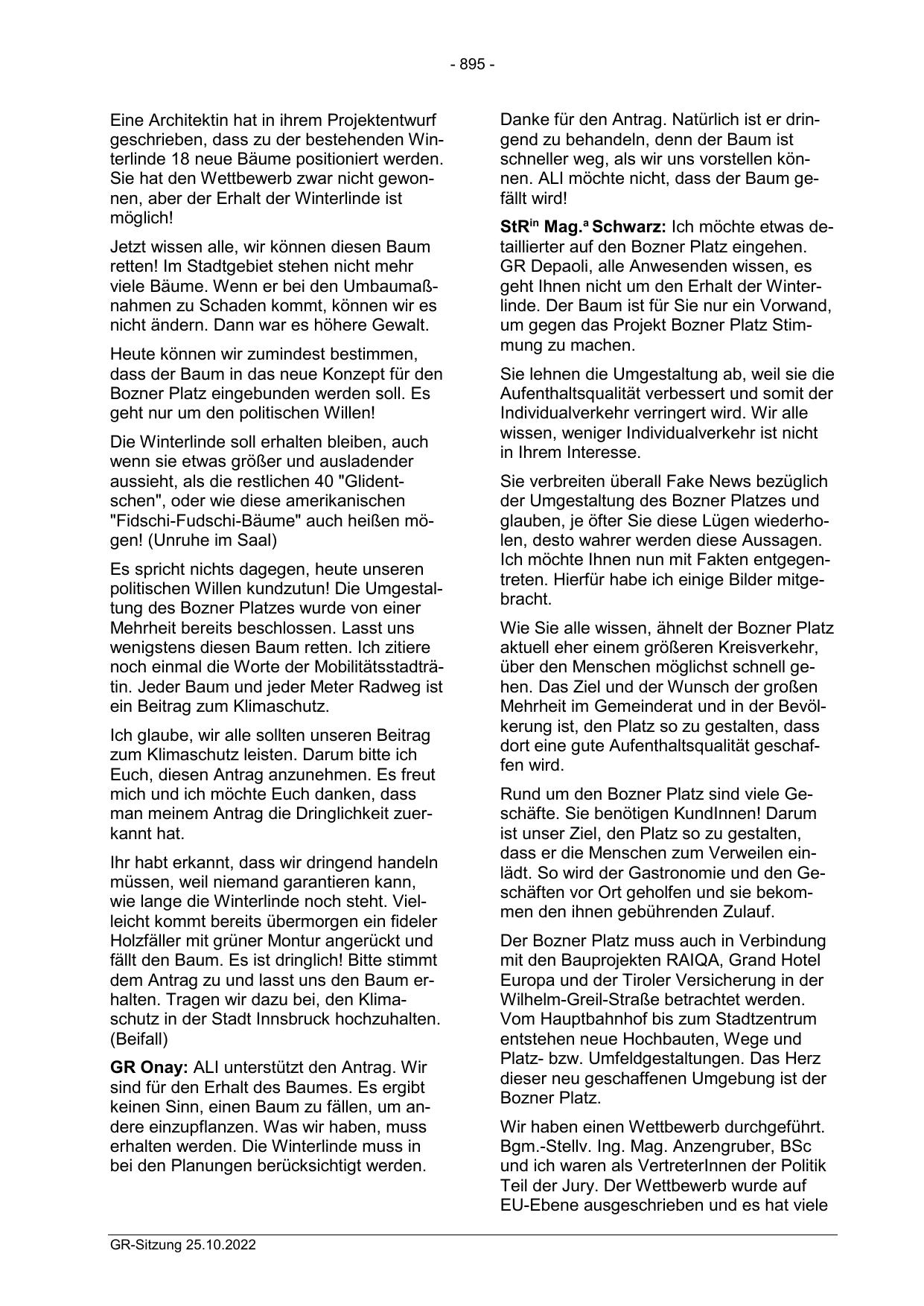 dem Antrag zu und lasst uns den Baum erhalten. Tragen wir dazu bei, den Klimaschutz in der Stadt Innsbruck hochzuhalten.