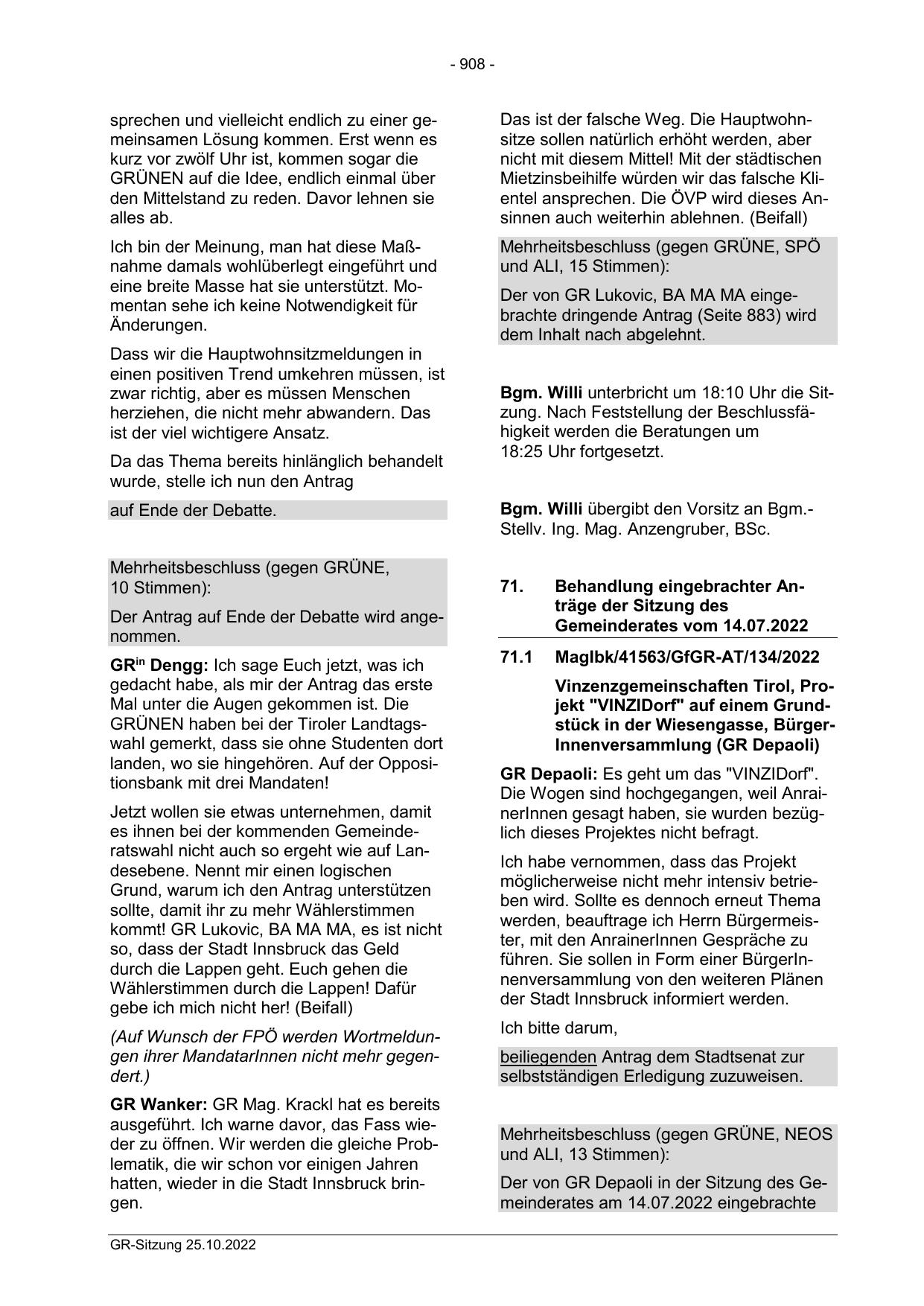 Mehrheitsbeschluss (gegen GRÜNE, NEOS