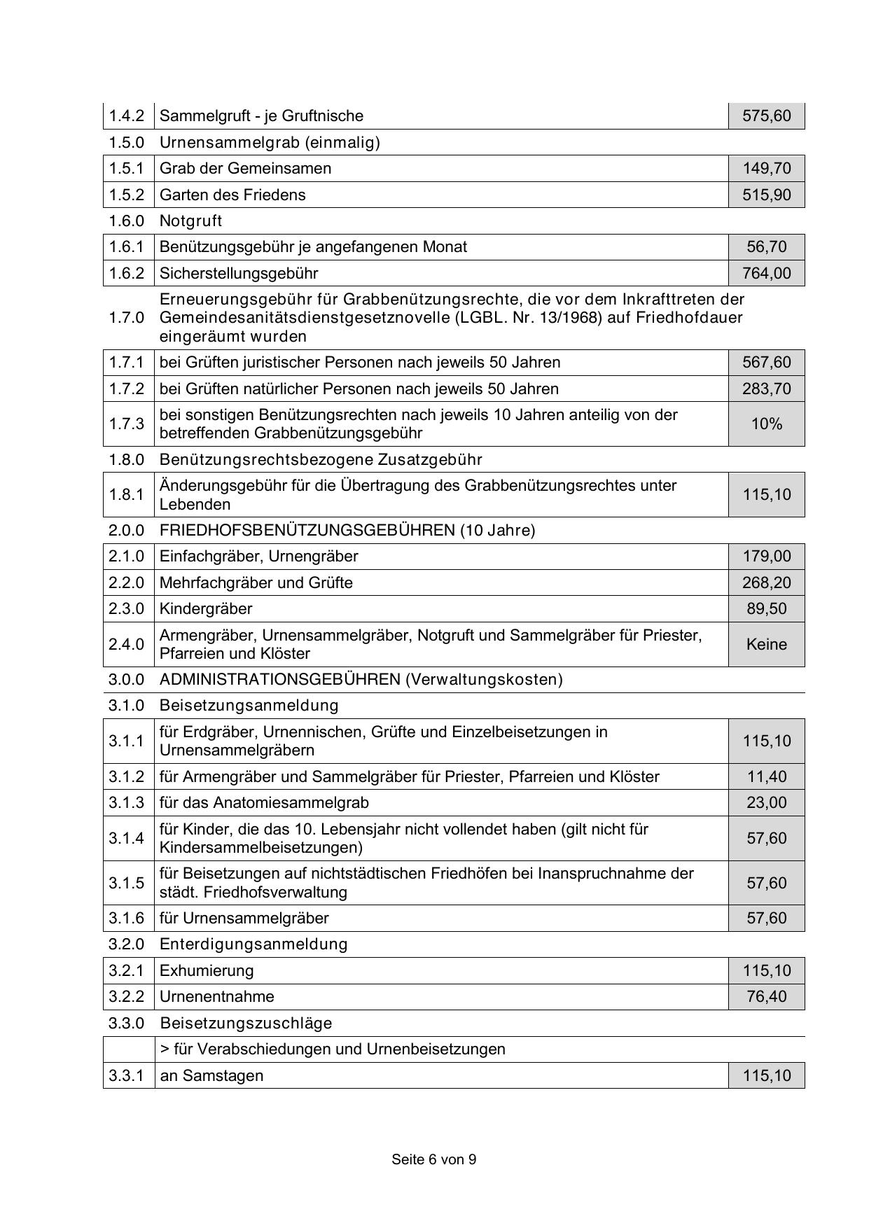 2.0.0 FRIEDHOFSBENÜTZUNGSGEBÜHREN (10 Jahre)