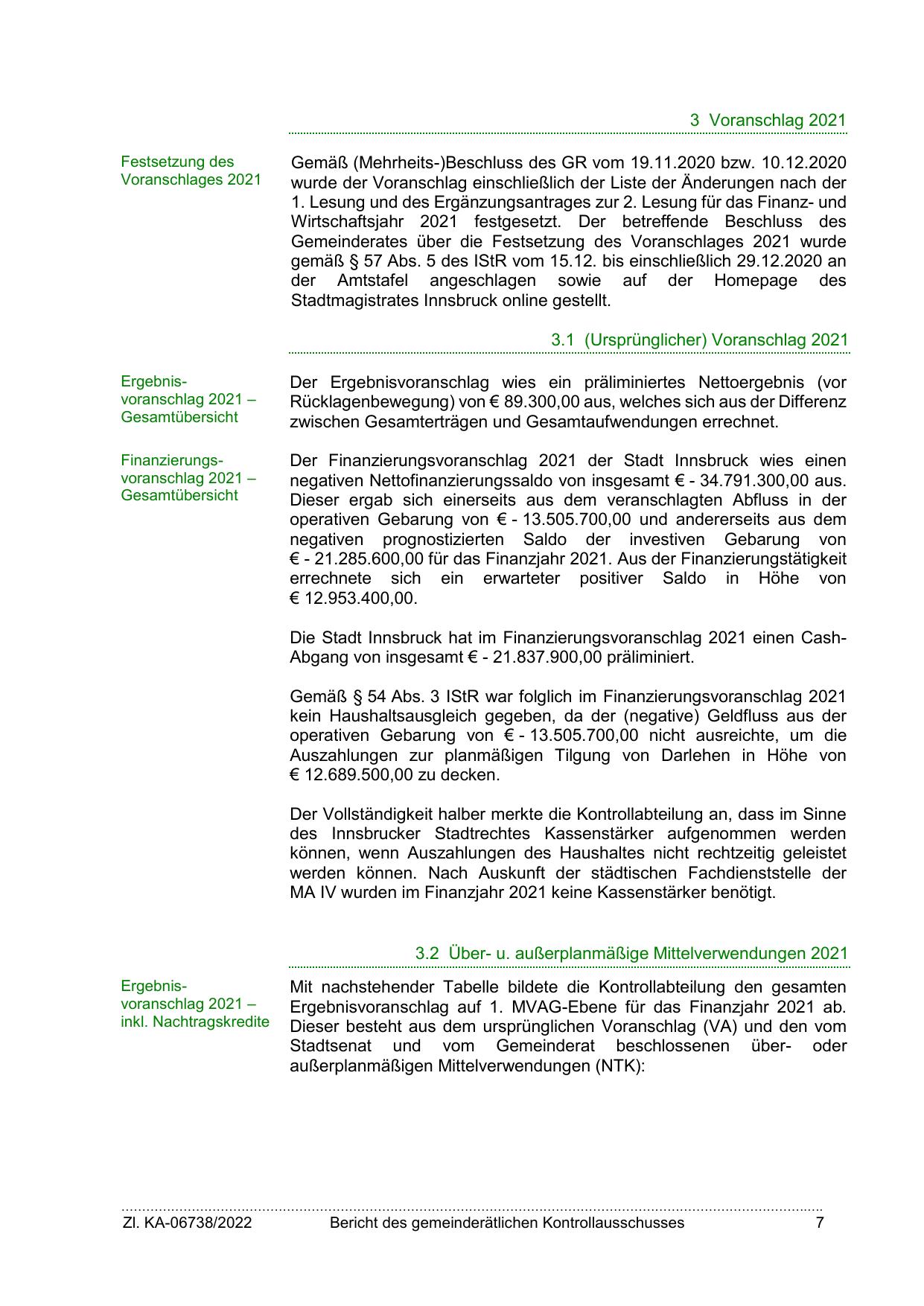Gemäß § 54 Abs. 3 IStR war folglich im Finanzierungsvoranschlag 2021