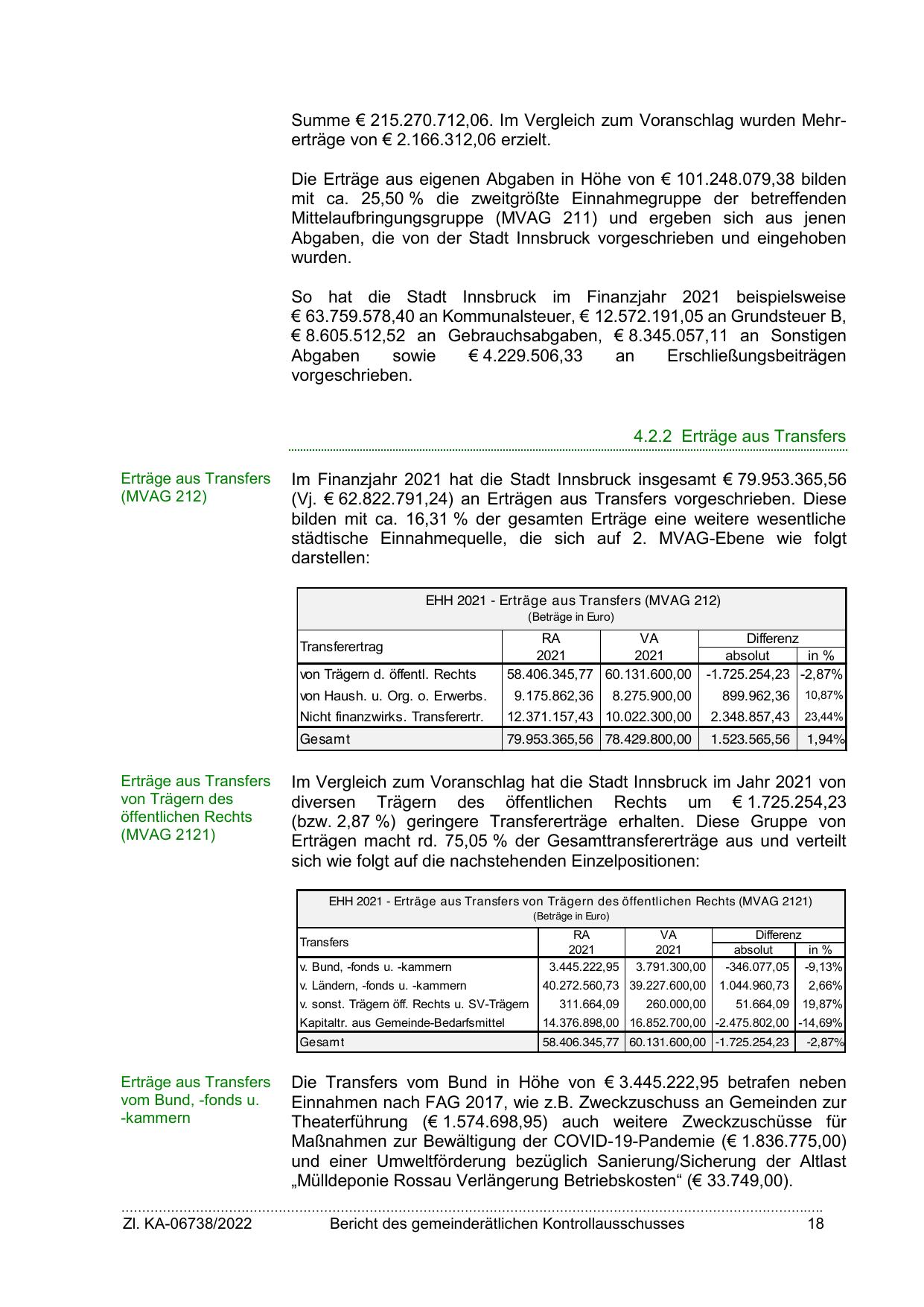 (Vj. € 62.822.791,24) an Erträgen aus Transfers vorgeschrieben. Diese