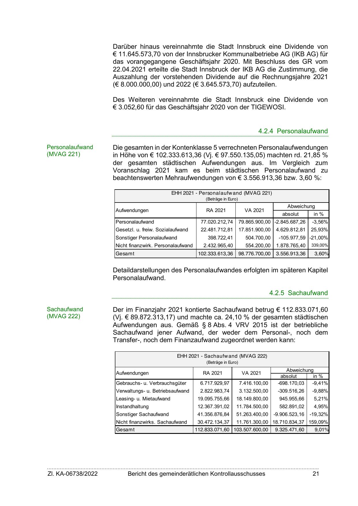 Der im Finanzjahr 2021 kontierte Sachaufwand betrug € 112.833.071,60