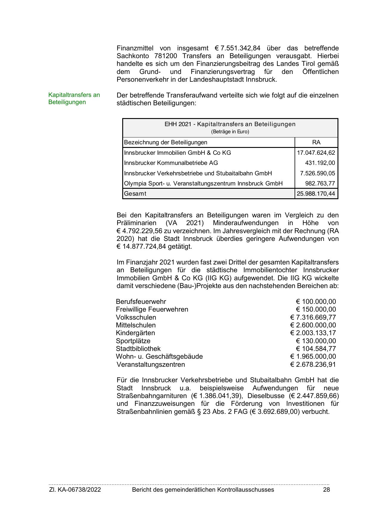 Stadt Innsbruck u.a. beispielsweise Aufwendungen für neue