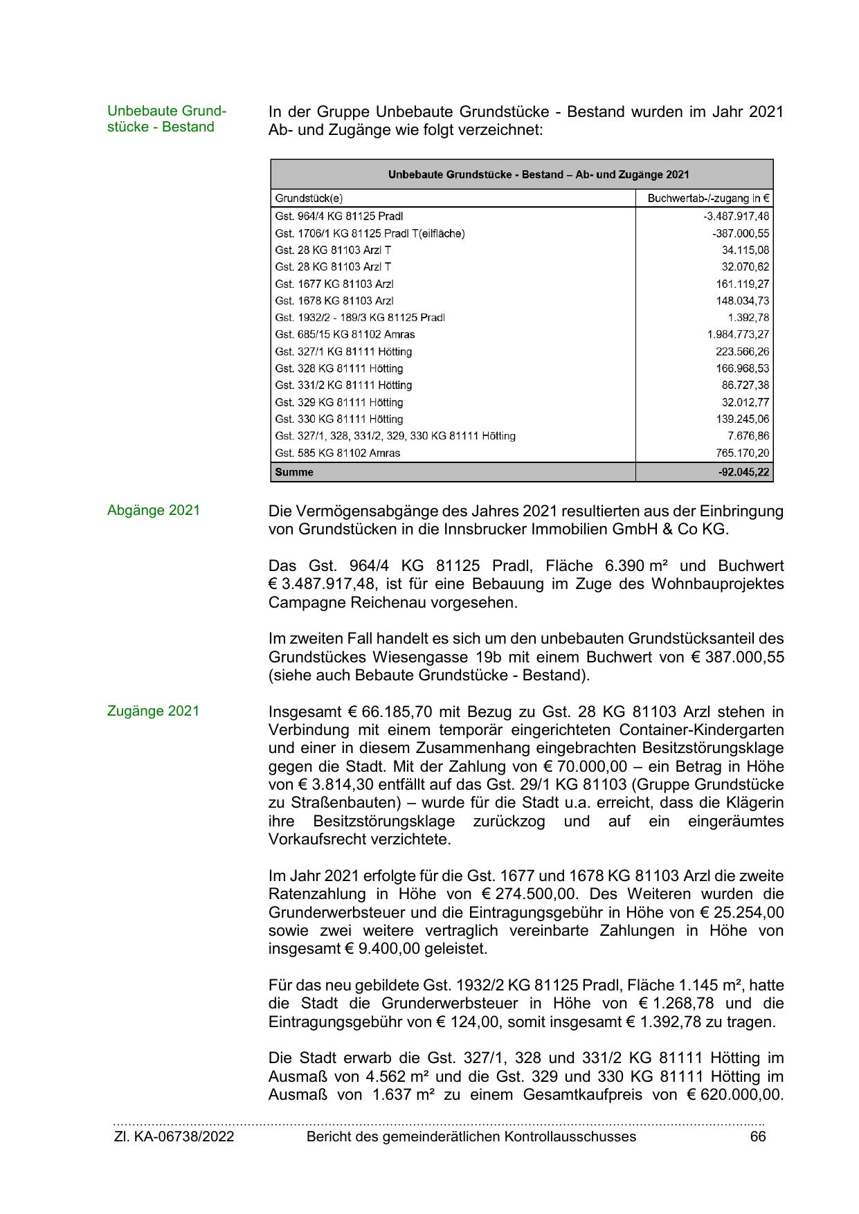 Unbebaute Grundstücke - Bestand - Ab- und Zugänge 2021