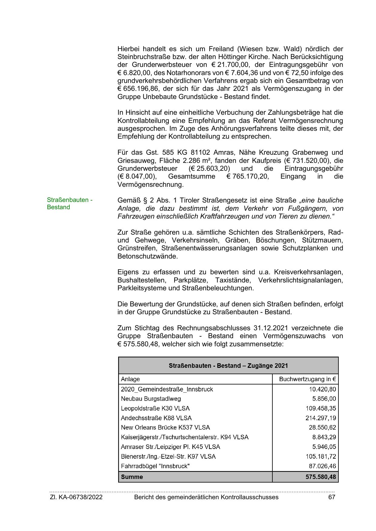 Gruppe Straßenbauten - Bestand einen Vermögenszuwachs von