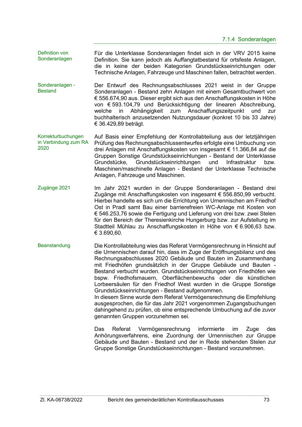 mit Friedhöfen grundsätzlich in der Gruppe Gebäude und Bauten Bestand verbucht wurden. Grundstückseinrichtungen von Friedhöfen wie