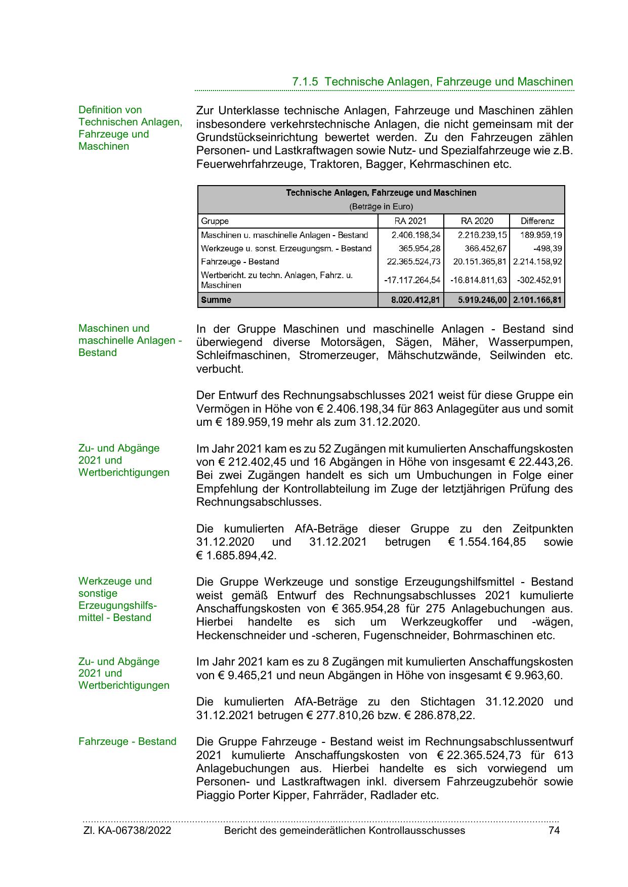 Die Gruppe Fahrzeuge - Bestand weist im Rechnungsabschlussentwurf