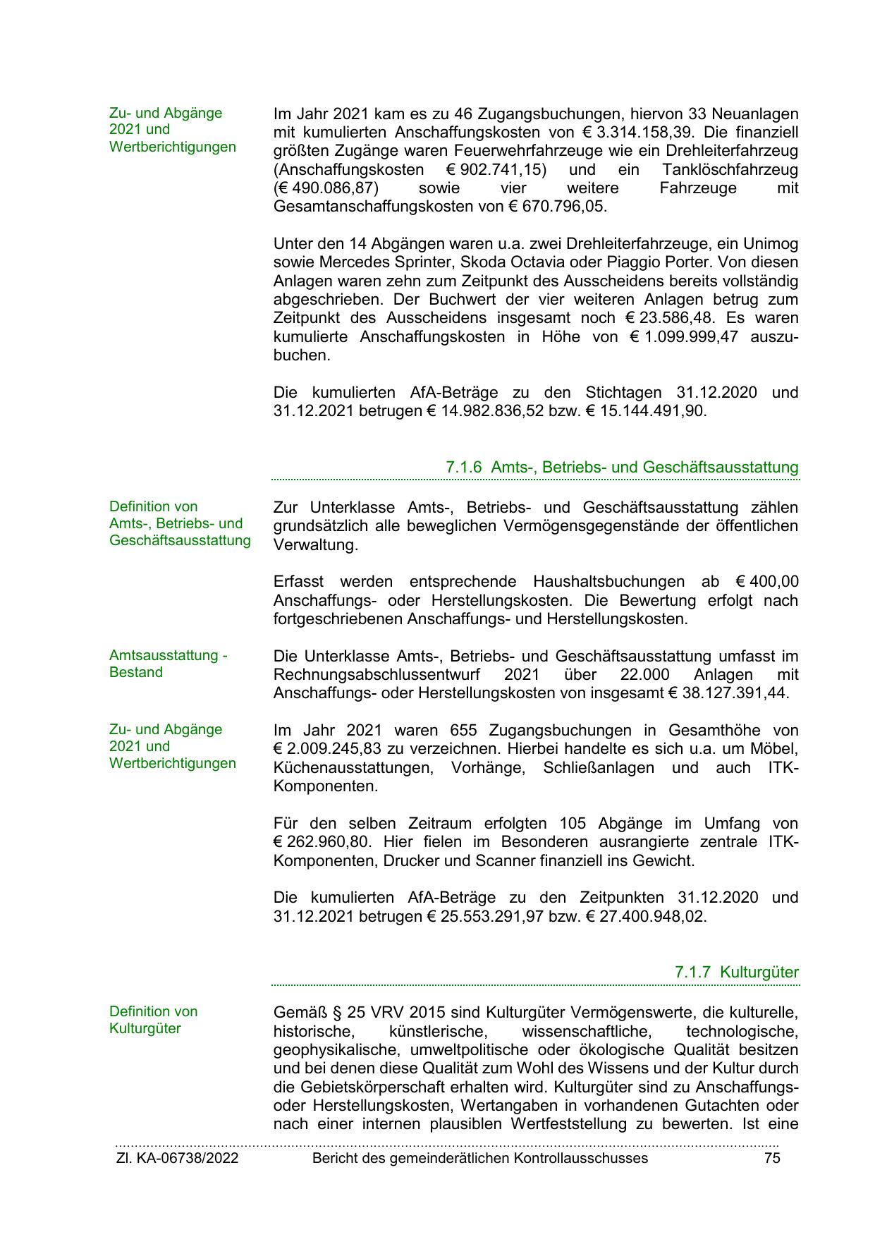 die Gebietskörperschaft erhalten wird. Kulturgüter sind zu Anschaffungsoder Herstellungskosten, Wertangaben in vorhandenen Gutachten oder