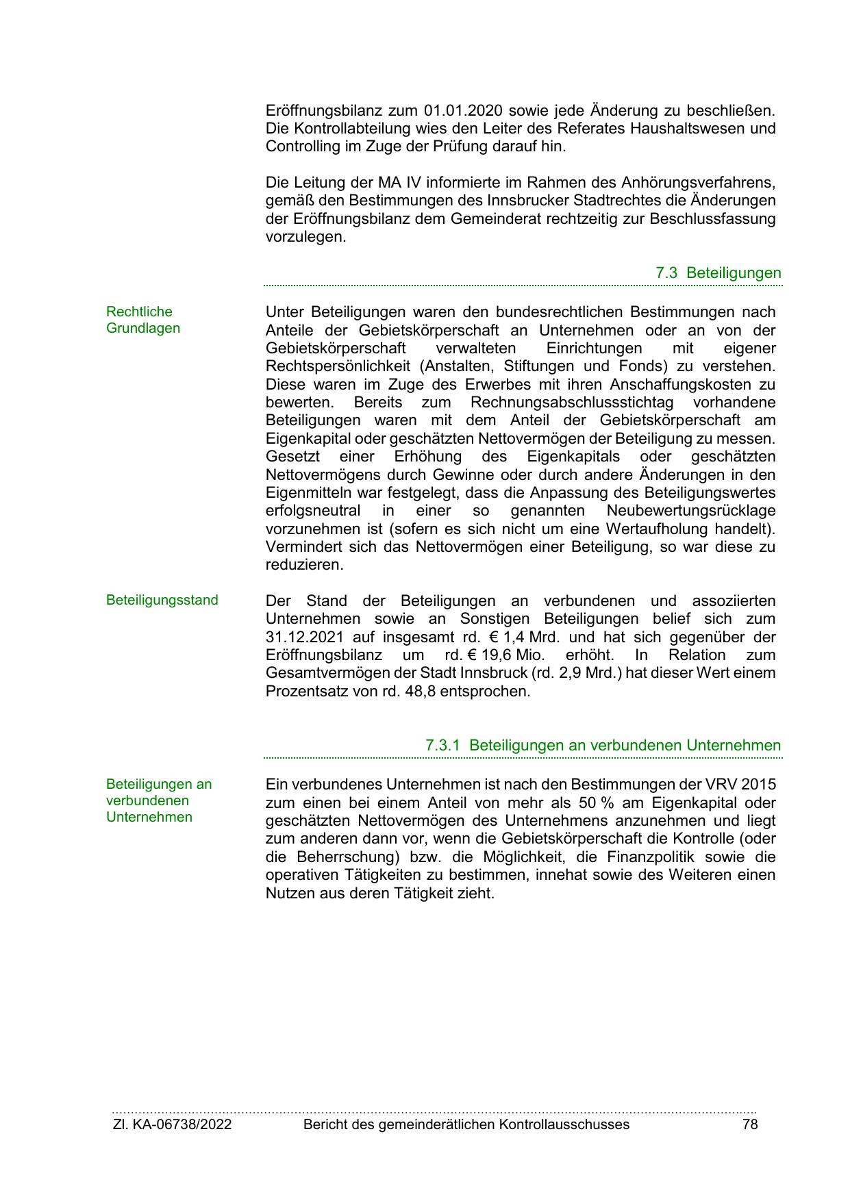 Beteiligungen waren mit dem Anteil der Gebietskörperschaft am