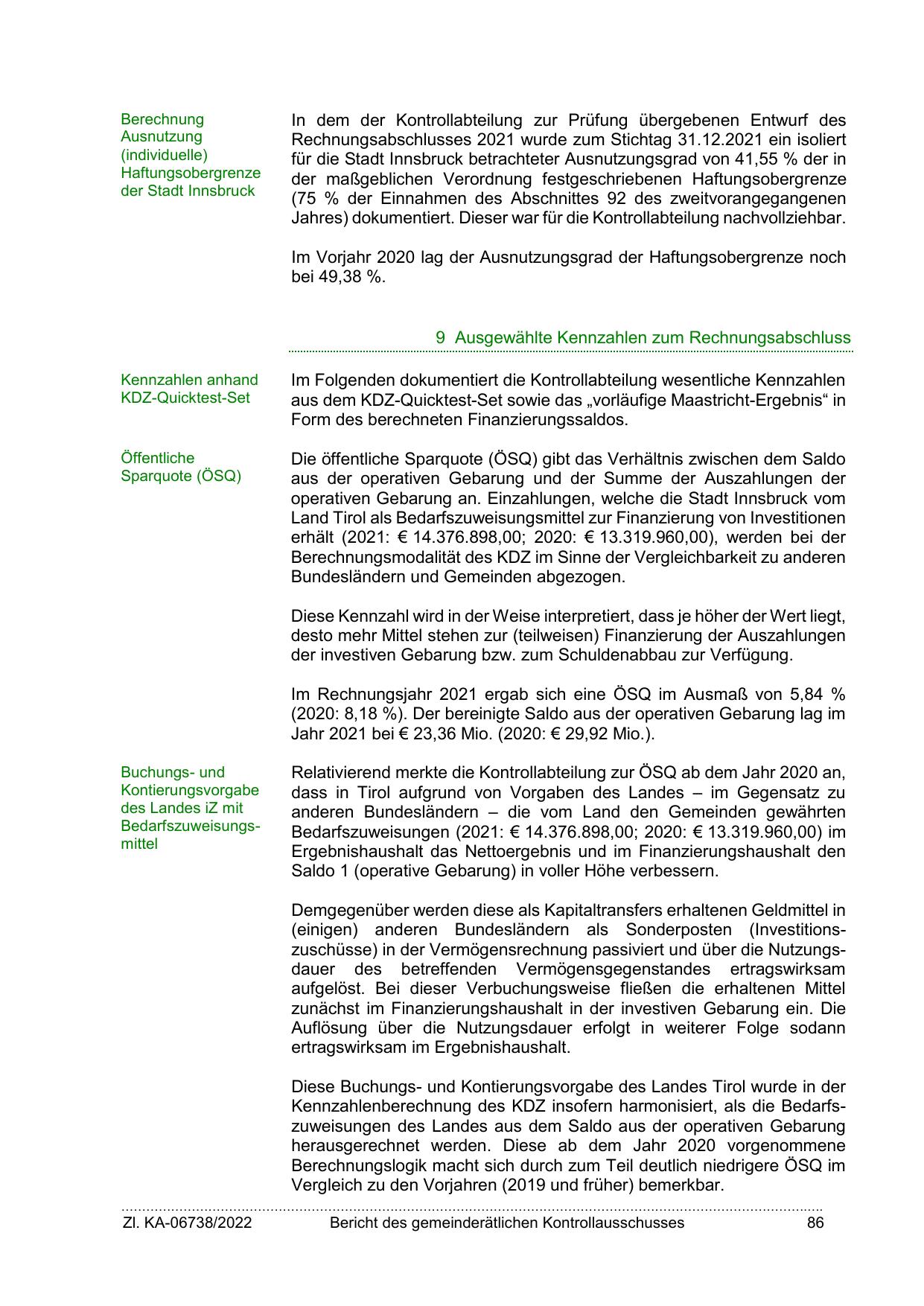 Kennzahlenberechnung des KDZ insofern harmonisiert, als die Bedarfszuweisungen des Landes aus dem Saldo aus der operativen Gebarung
