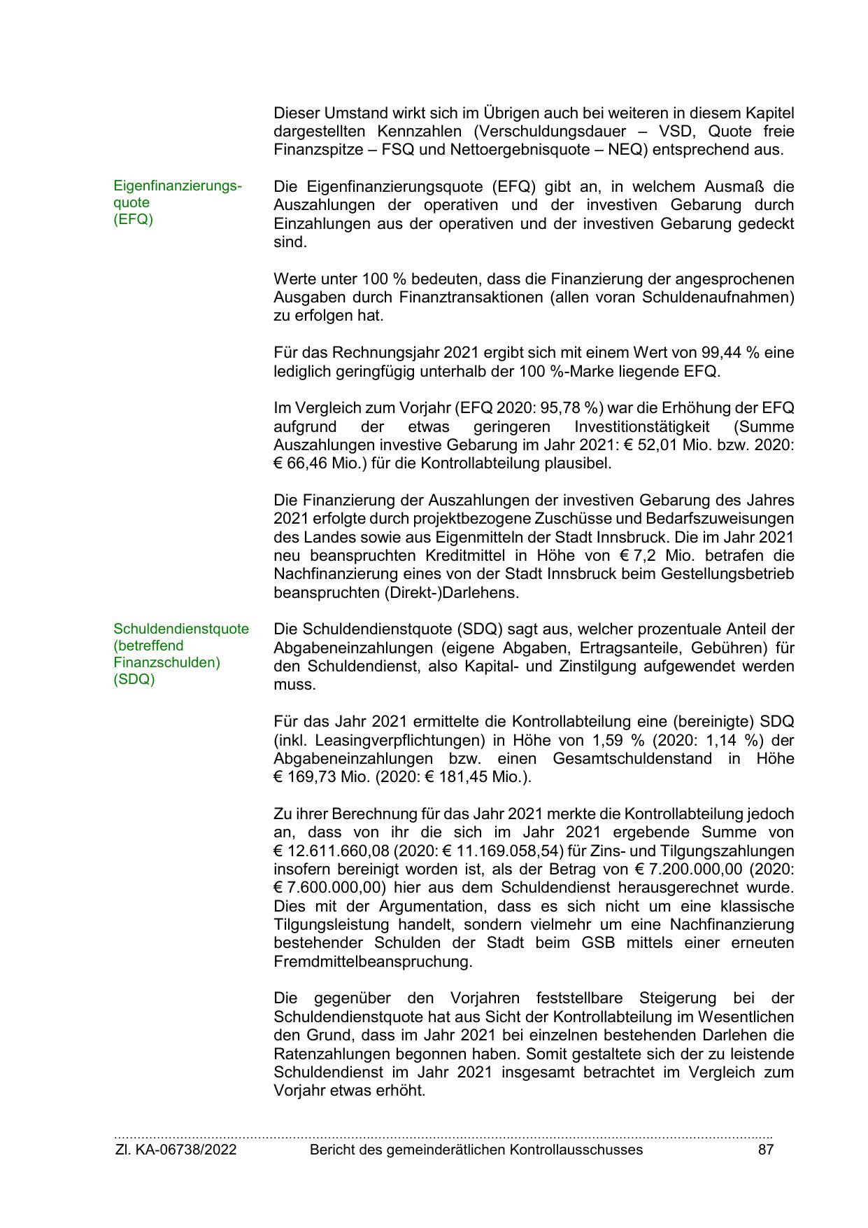 Die Eigenfinanzierungsquote (EFQ) gibt an, in welchem Ausmaß die
