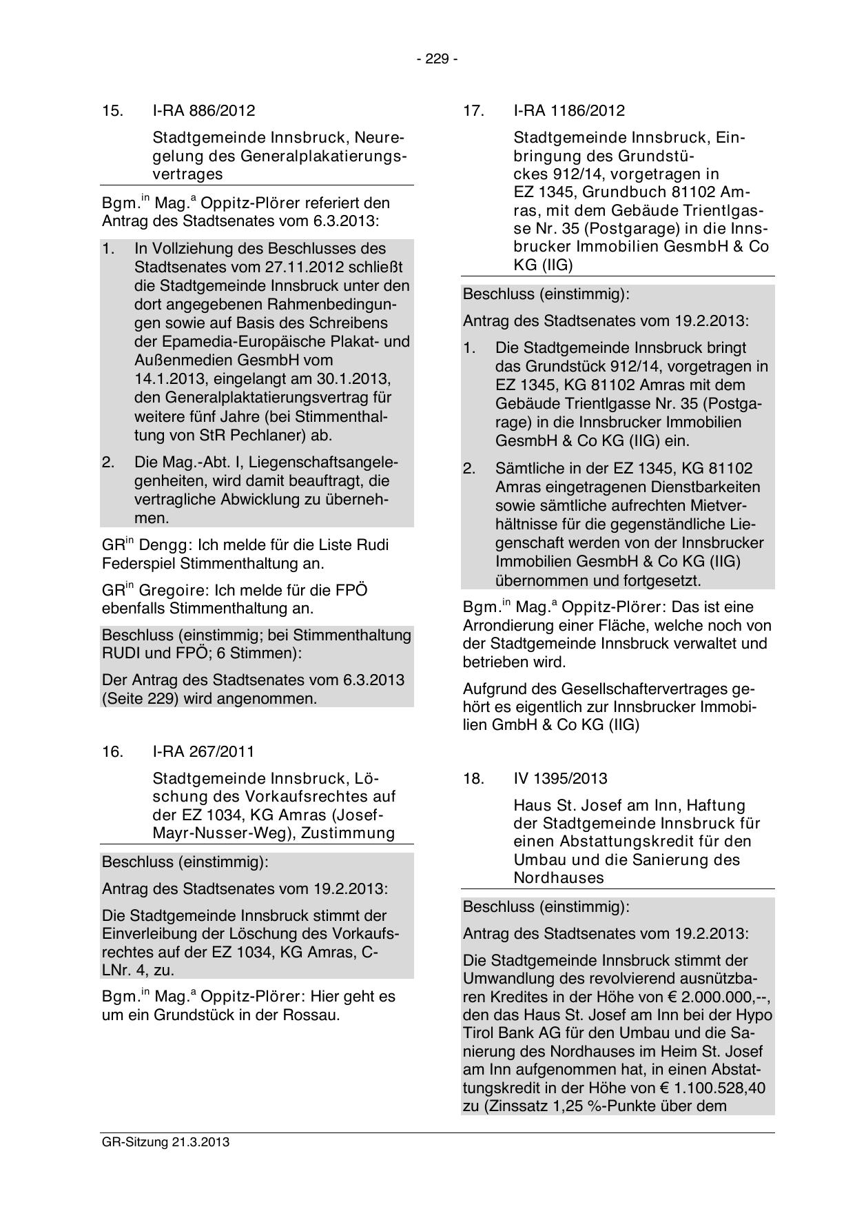 weitere fünf Jahre (bei Stimmenthaltung von StR Pechlaner) ab.