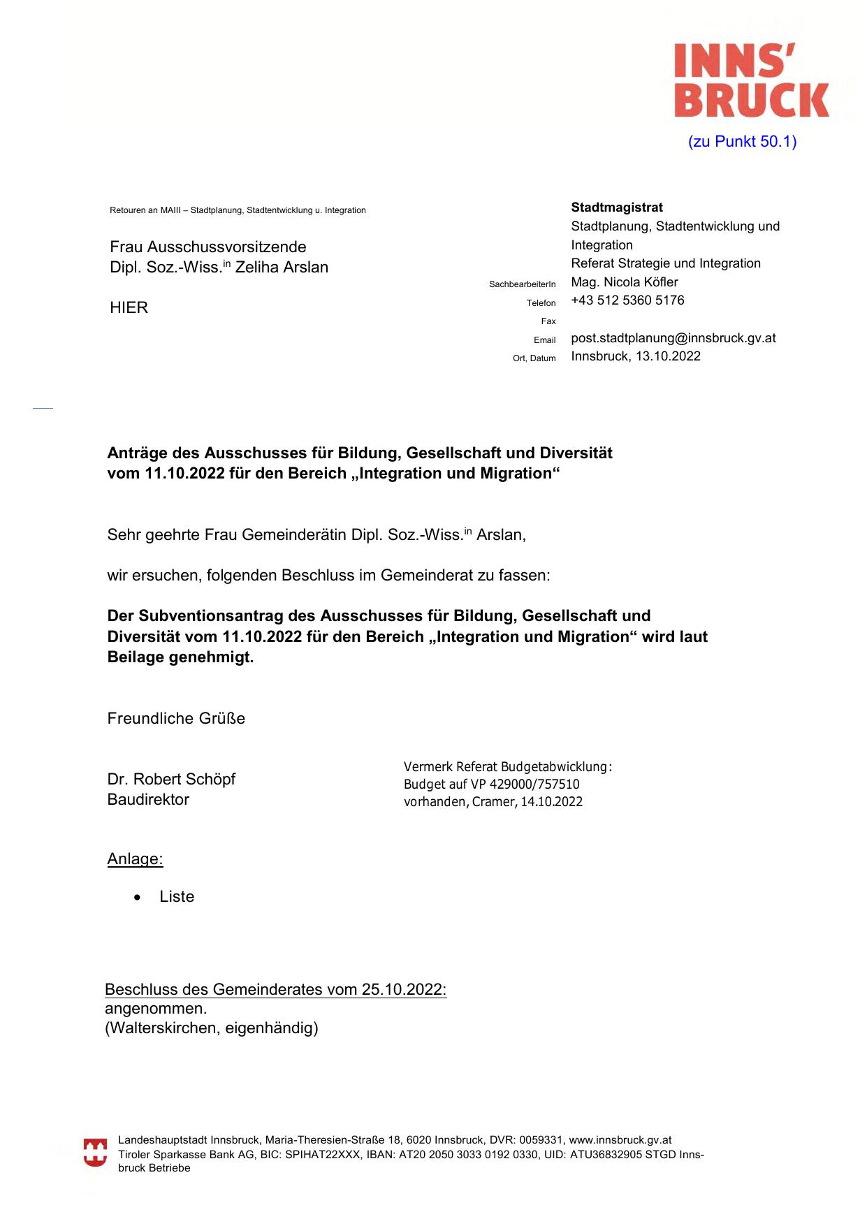 Sehr geehrte Frau Gemeinderätin Dipl. Soz.-Wiss.in Arslan,