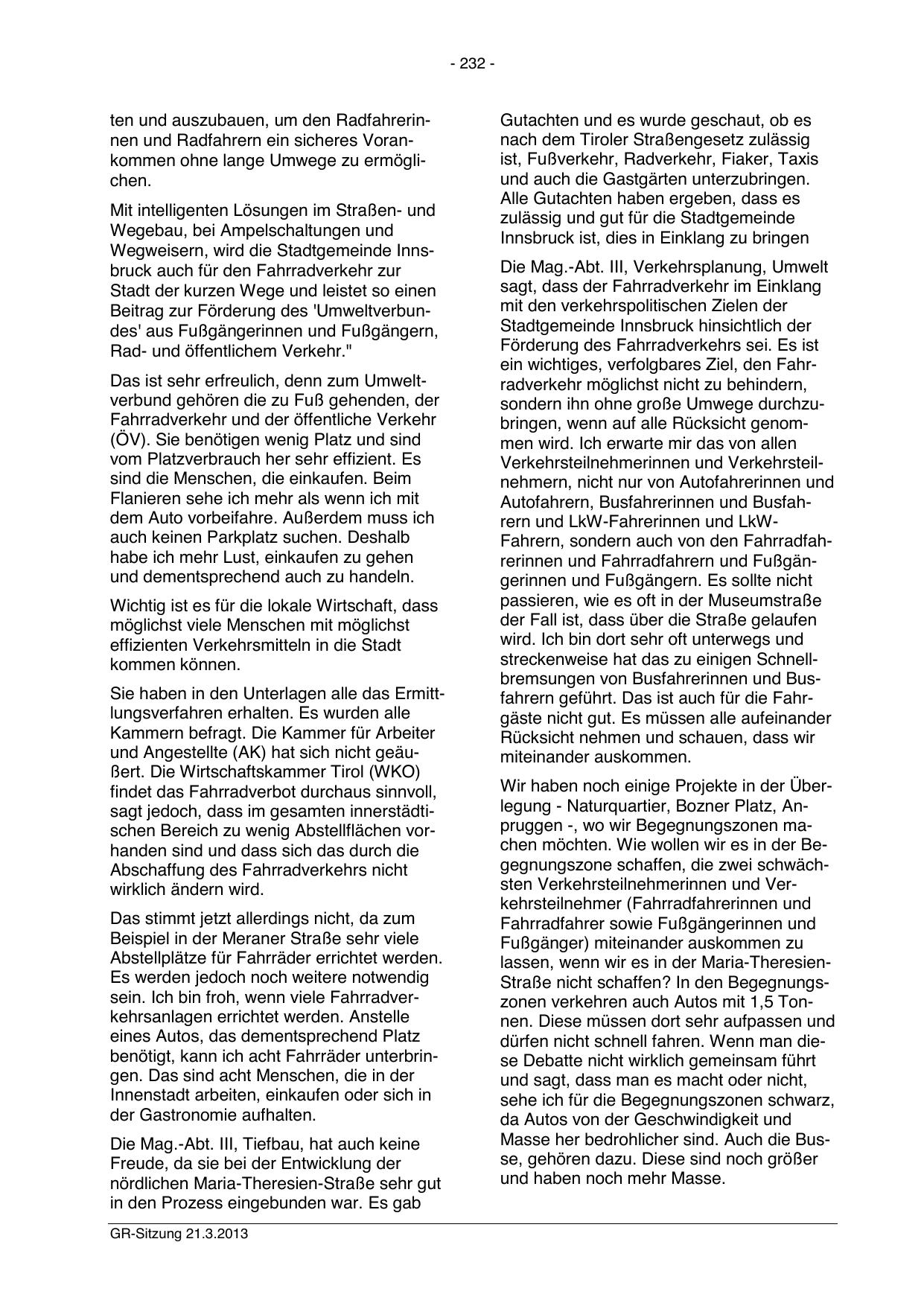 lassen, wenn wir es in der Maria-TheresienStraße nicht schaffen? In den Begegnungszonen verkehren auch Autos mit 1,5 Tonnen. Diese müssen dort sehr aufpassen und