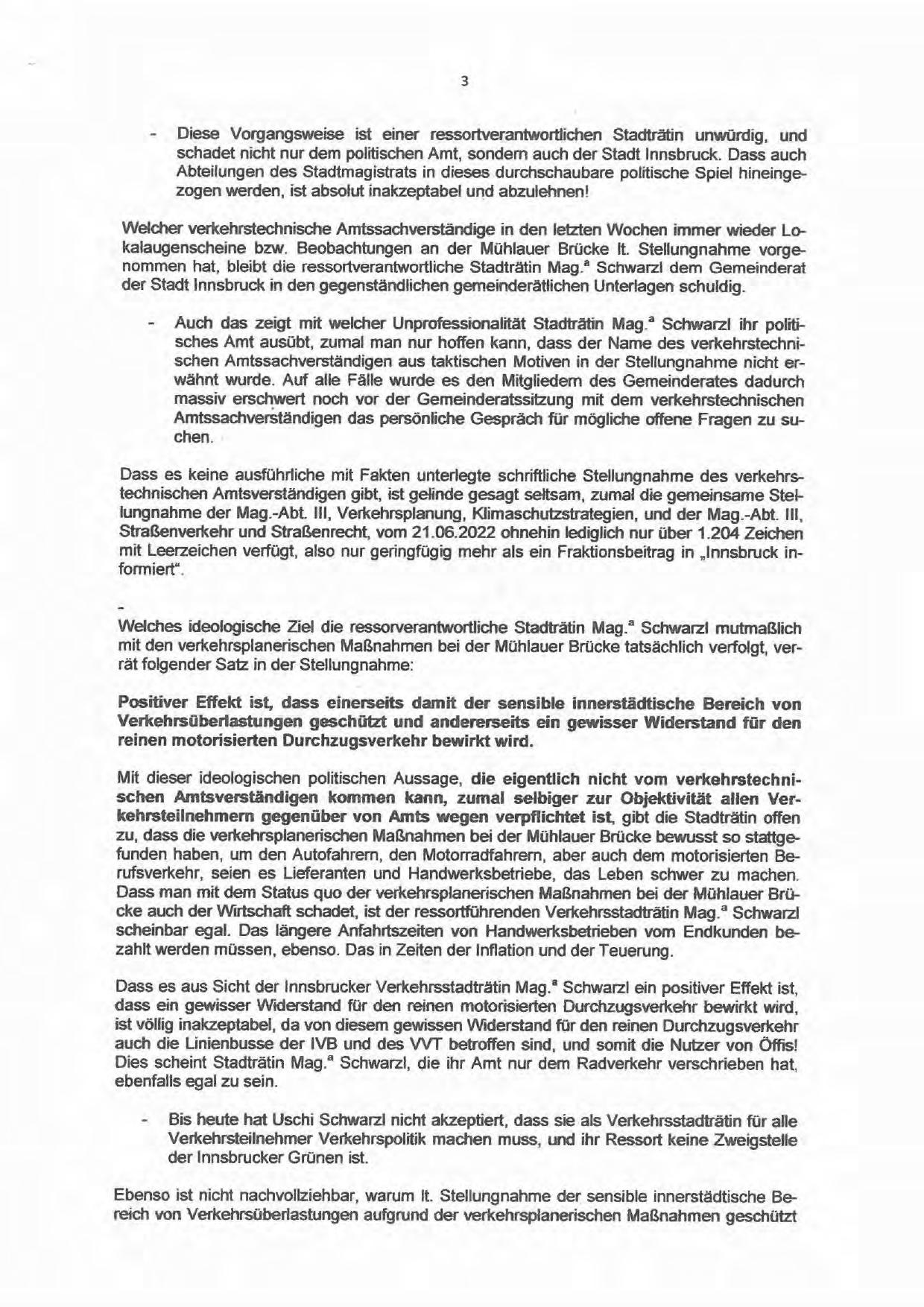 mit Leerzeichen verfügt, also nur geringfügig mehr als ein Fraktionsbeitrag in „Innsbruck informiert".