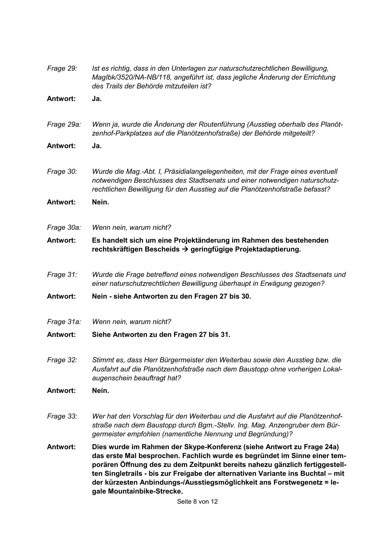 Wurde die Frage betreffend eines notwendigen Beschlusses des Stadtsenats und