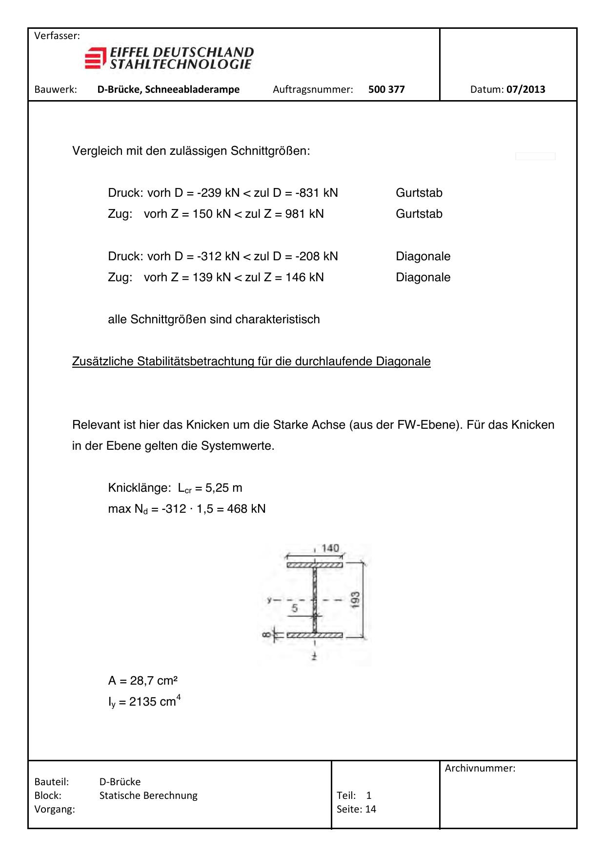 Zusätzliche Stabilitätsbetrachtung für die durchlaufende Diagonale