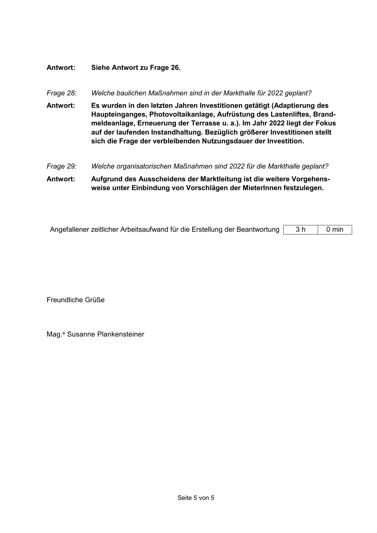 Angefallener zeitlicher Arbeitsaufwand für die Erstellung der Beantwortung