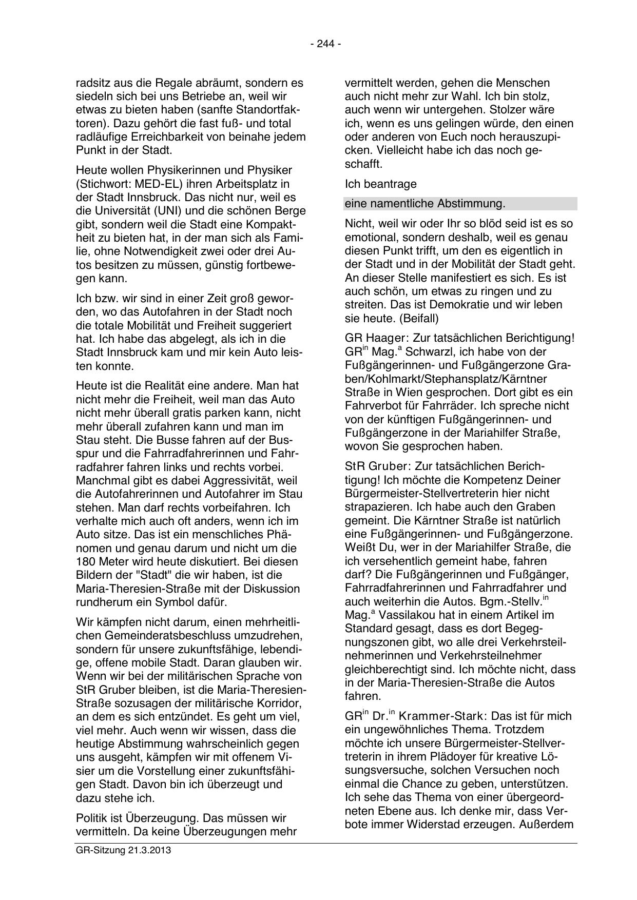 auch weiterhin die Autos. Bgm.-Stellv.in