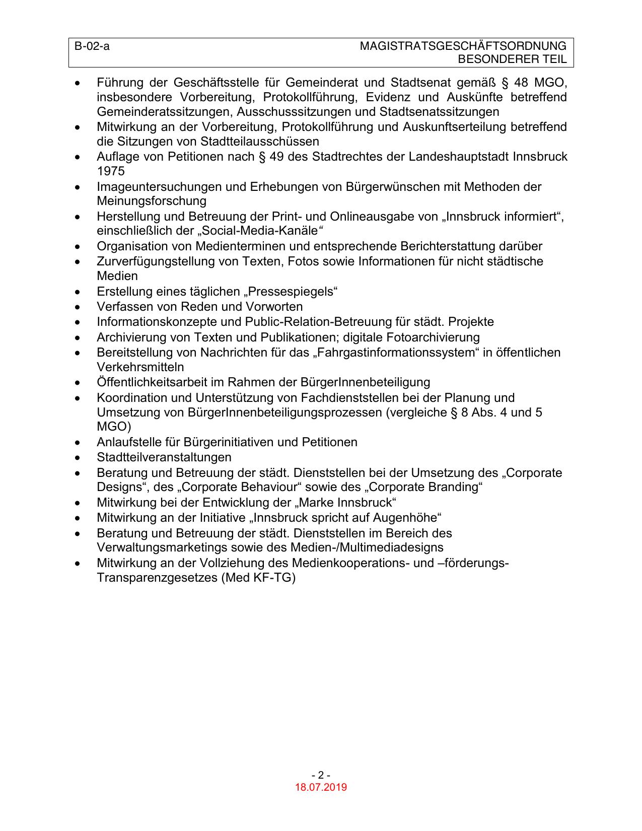 Führung der Geschäftsstelle für Gemeinderat und Stadtsenat gemäß § 48 MGO,