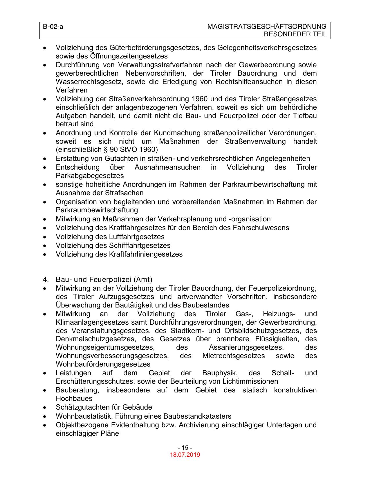 Mitwirkung an der Vollziehung der Tiroler Bauordnung, der Feuerpolizeiordnung,