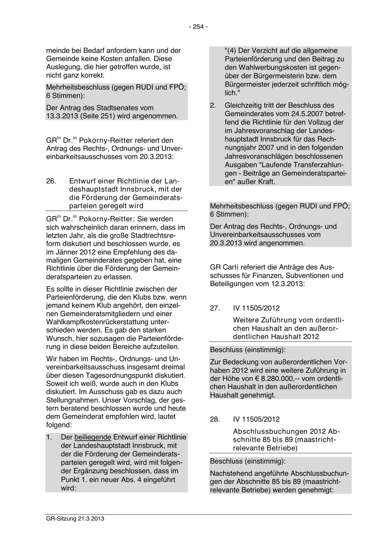 Mehrheitsbeschluss (gegen RUDI und FPÖ;