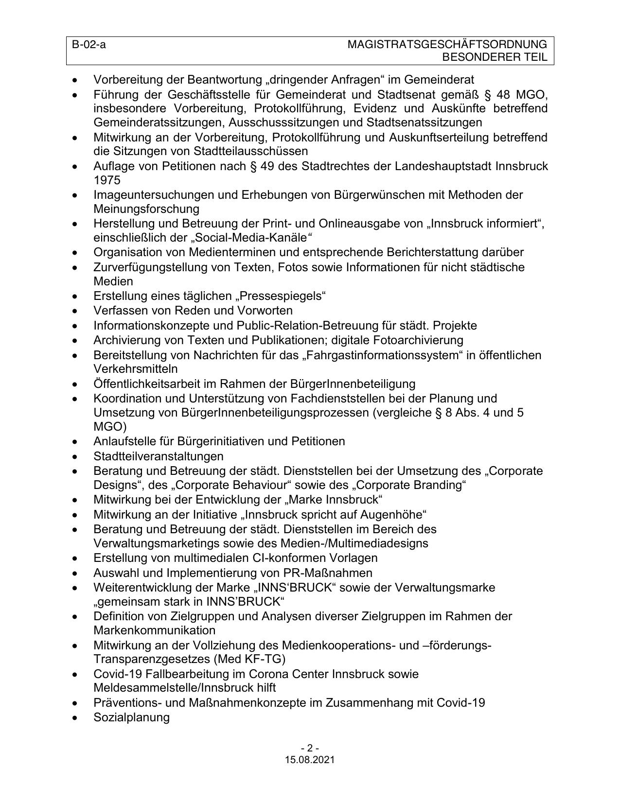 Führung der Geschäftsstelle für Gemeinderat und Stadtsenat gemäß § 48 MGO,