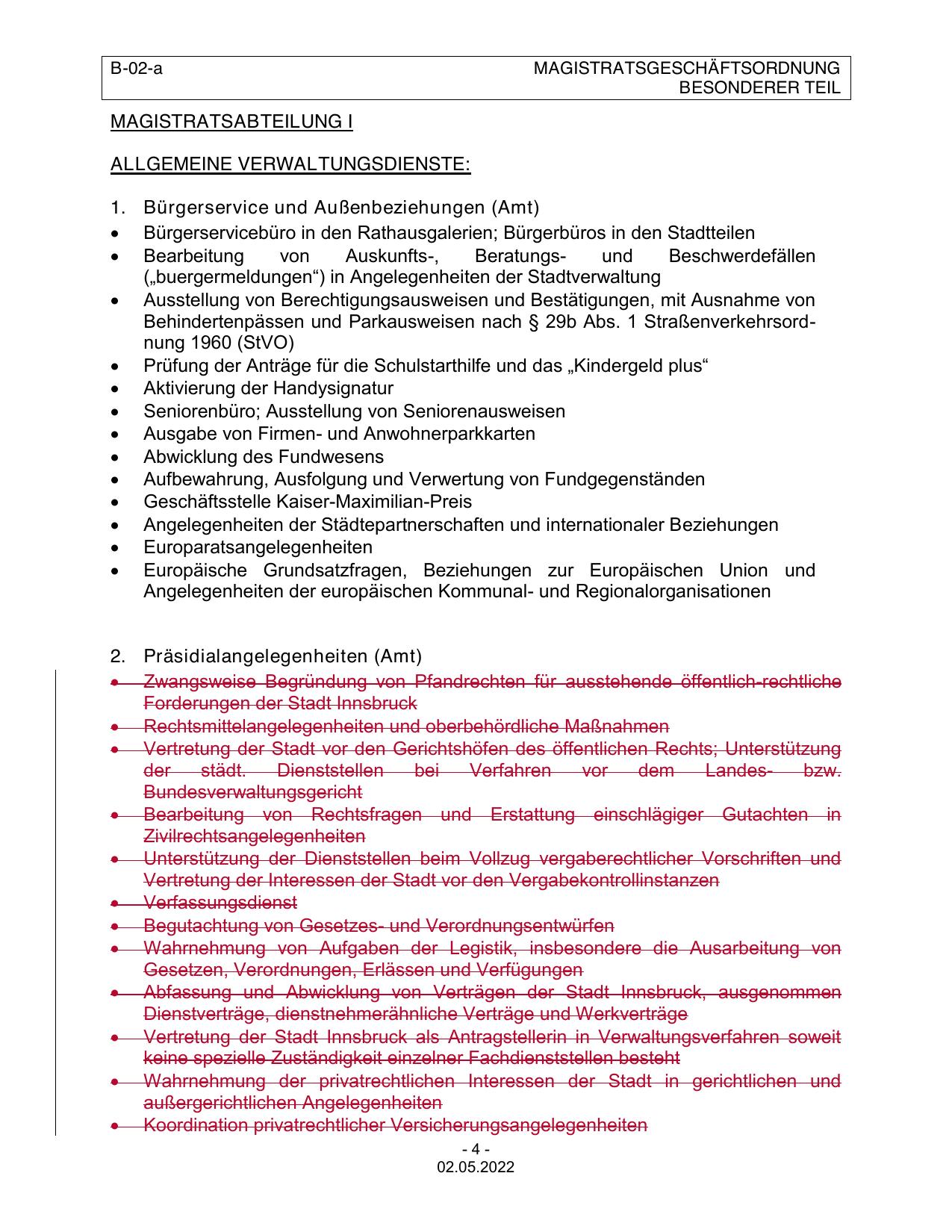 Vertretung der Stadt Innsbruck als Antragstellerin in Verwaltungsverfahren soweit
