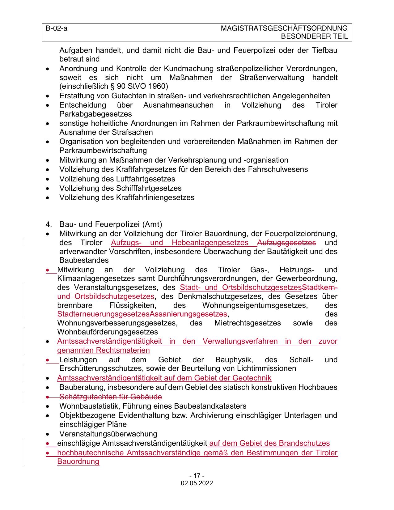 Mitwirkung an der Vollziehung der Tiroler Bauordnung, der Feuerpolizeiordnung,