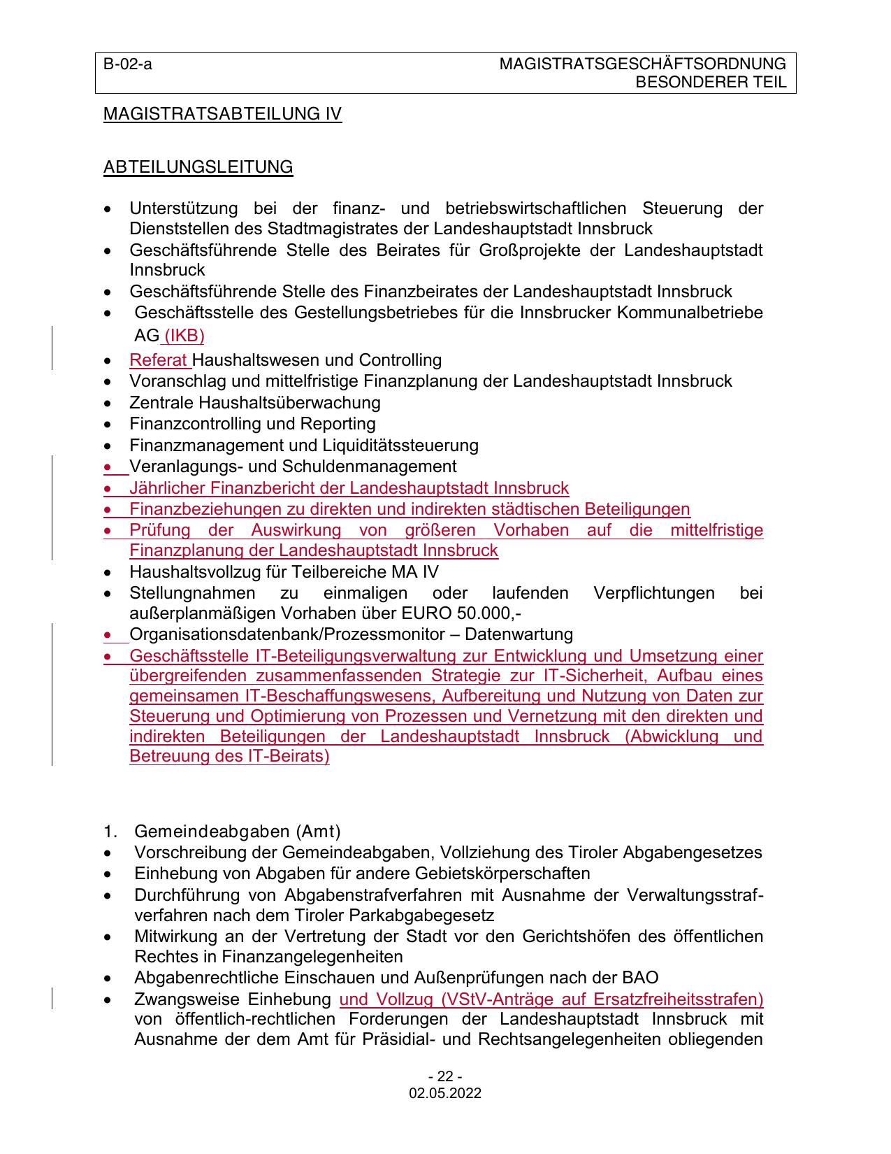 Dienststellen des Stadtmagistrates der Landeshauptstadt Innsbruck