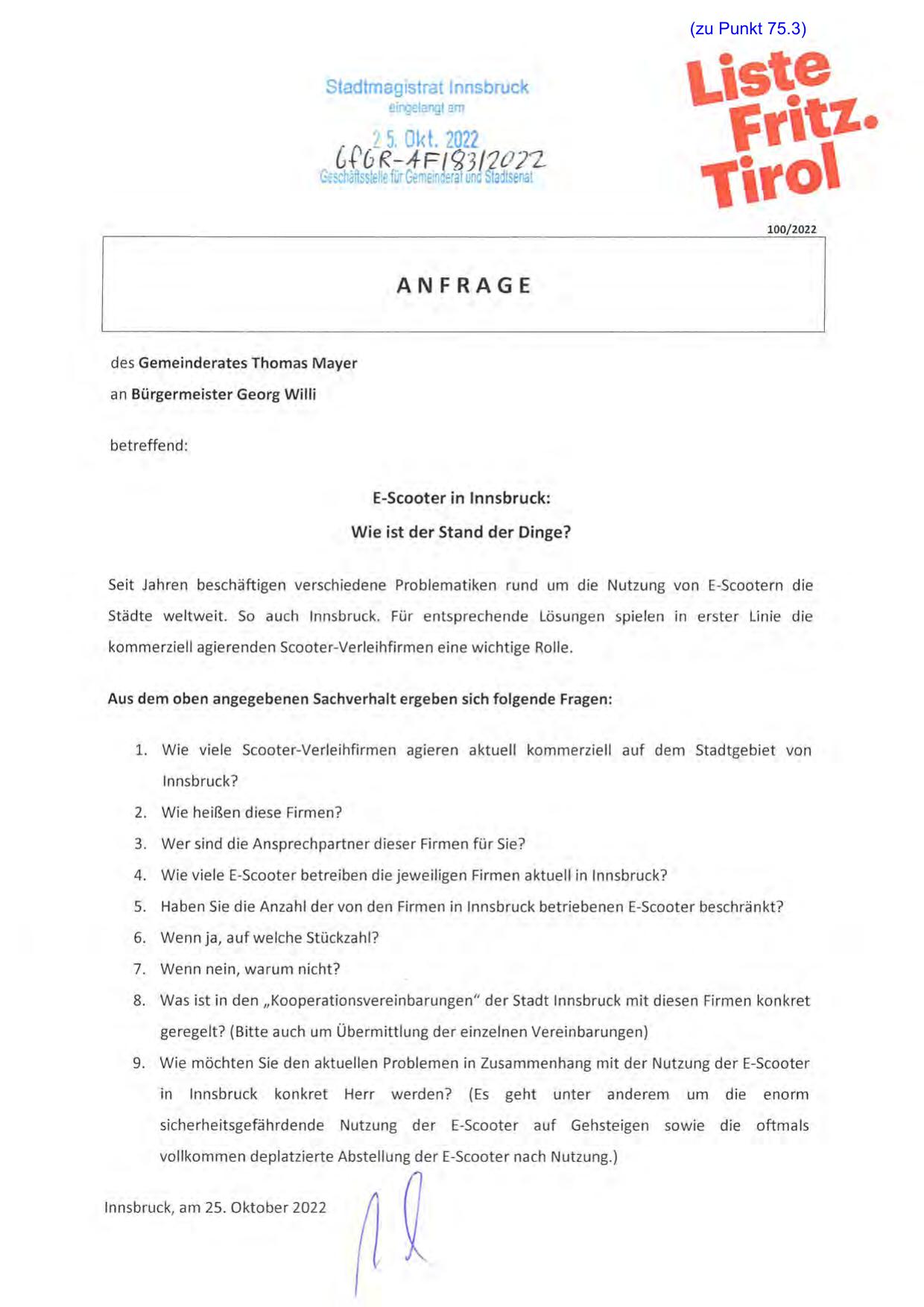 Innsbruck, am 25. Oktober 2022