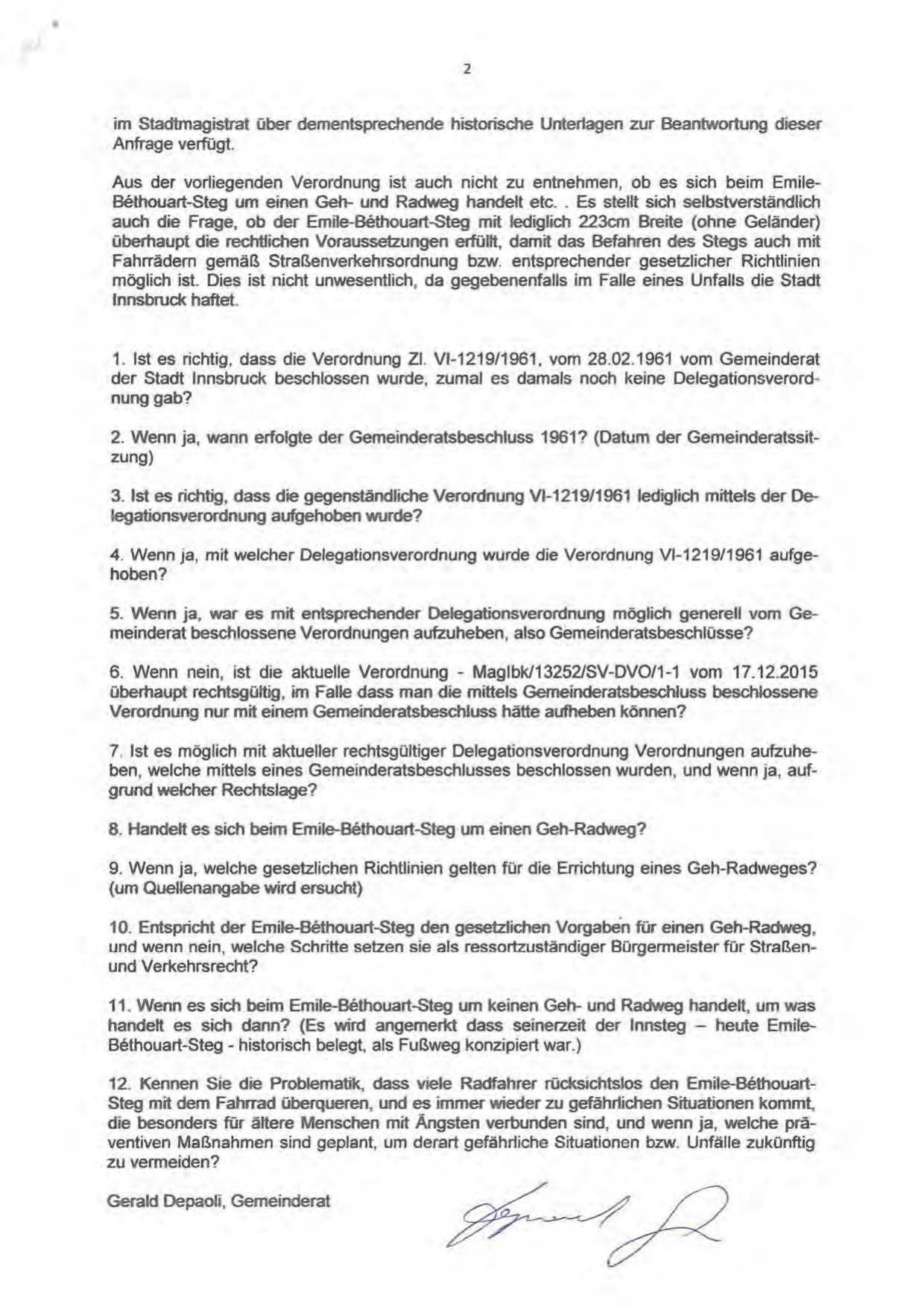 Aus der vorliegenden Verordnung ist auch nicht zu entnehmen, ob es sich beim EmileBethouart-Steg um einen Geh- und Radweg handelt etc. . Es stellt sich selbstverständlich