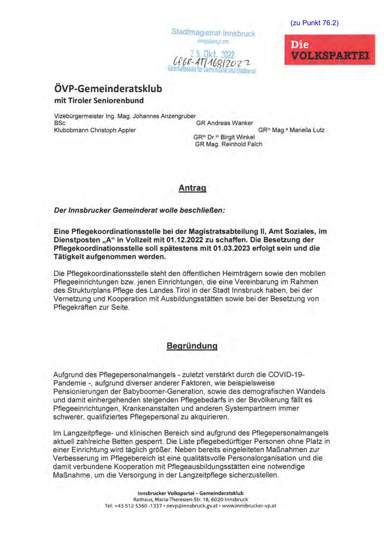 lnnsbrucker Volkspartei - Gemeinderatsklub