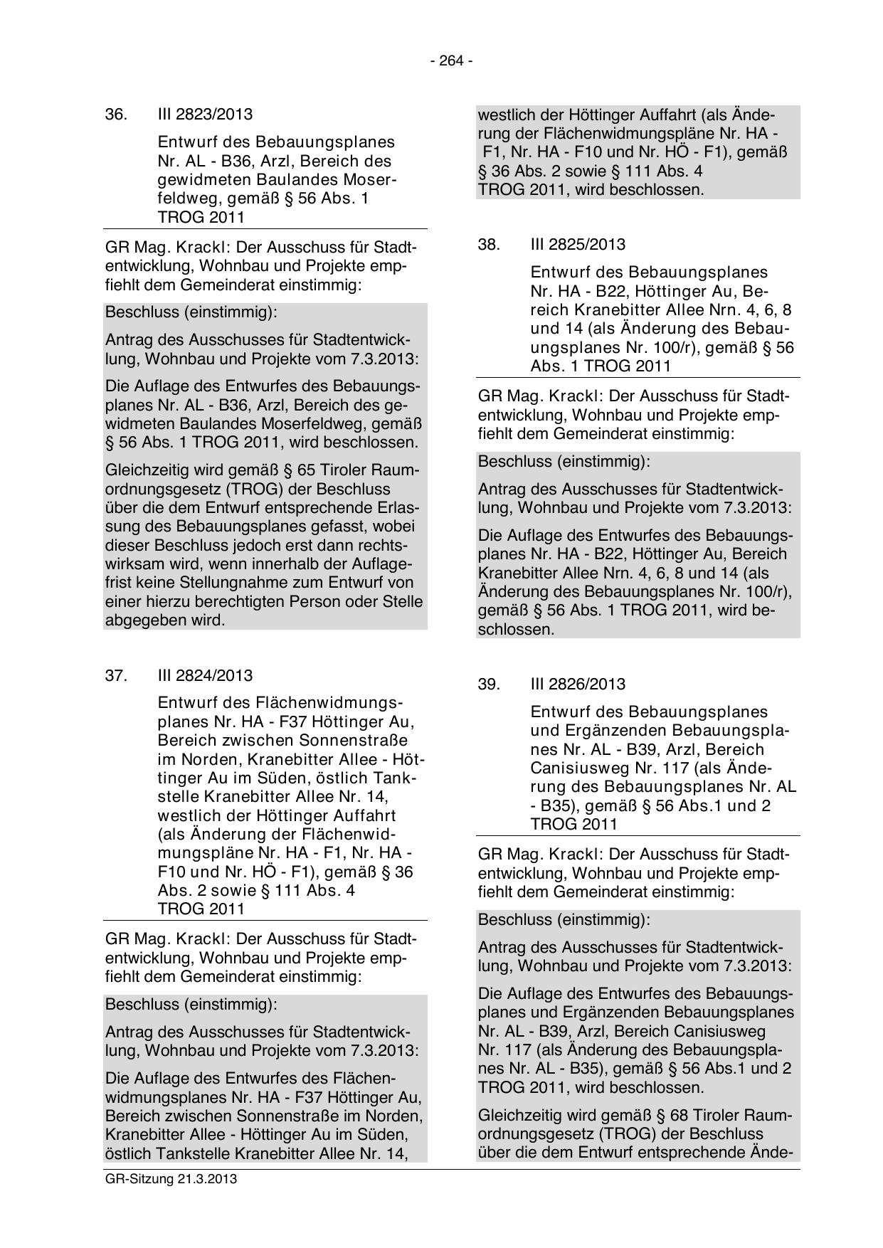 gemäß § 56 Abs. 1 TROG 2011, wird beschlossen.
