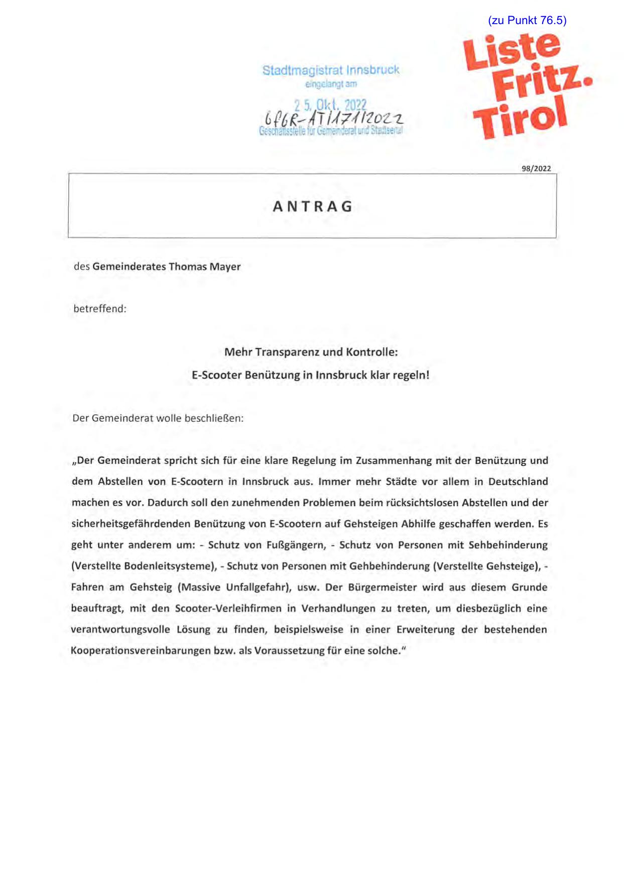 E-Scooter Benützung in Innsbruck klar regeln!