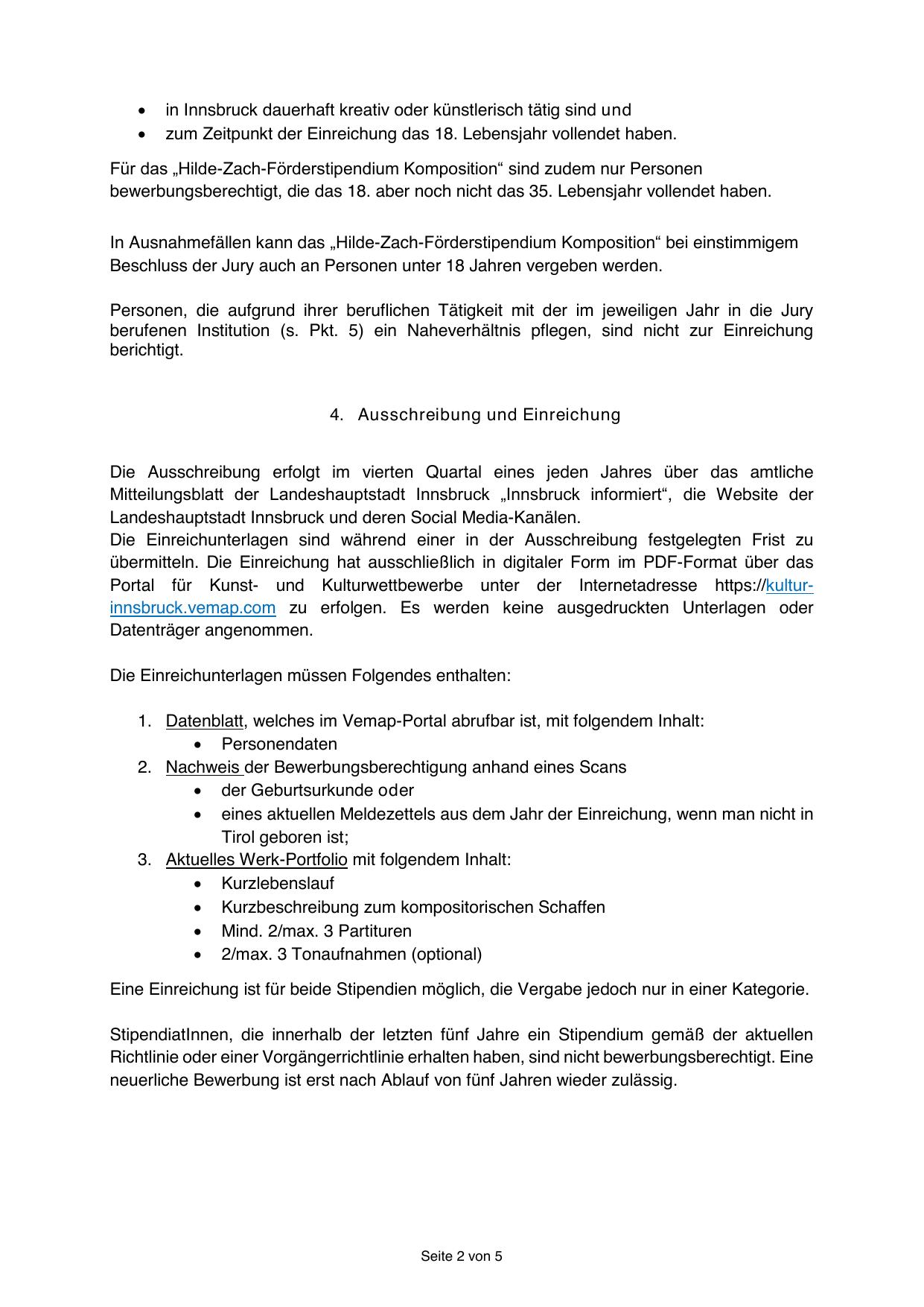 Für das „Hilde-Zach-Förderstipendium Komposition“ sind zudem nur Personen