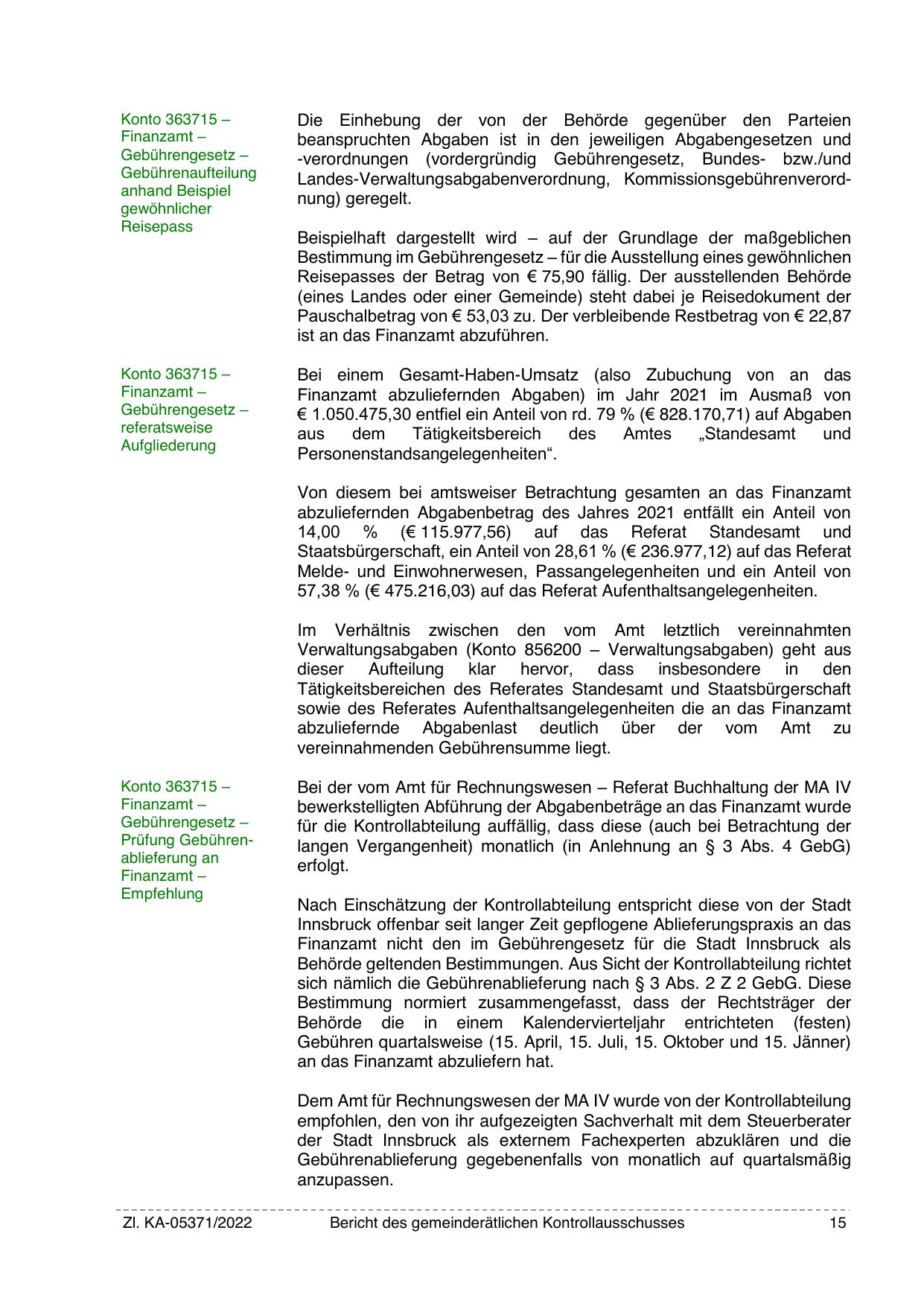 Finanzamt nicht den im Gebührengesetz für die Stadt Innsbruck als