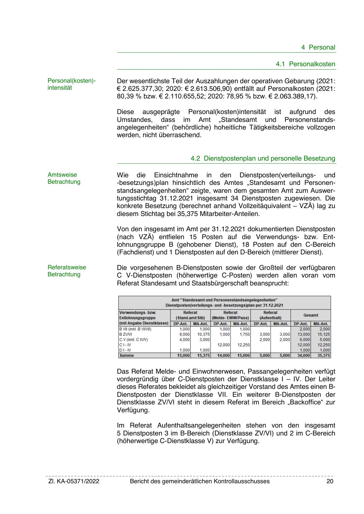 -besetzungs)plan hinsichtlich des Amtes „Standesamt und Personenstandsangelegenheiten“ zeigte, waren dem gesamten Amt zum Auswertungsstichtag 31.12.2021 insgesamt 34 Dienstposten zugewiesen. Die